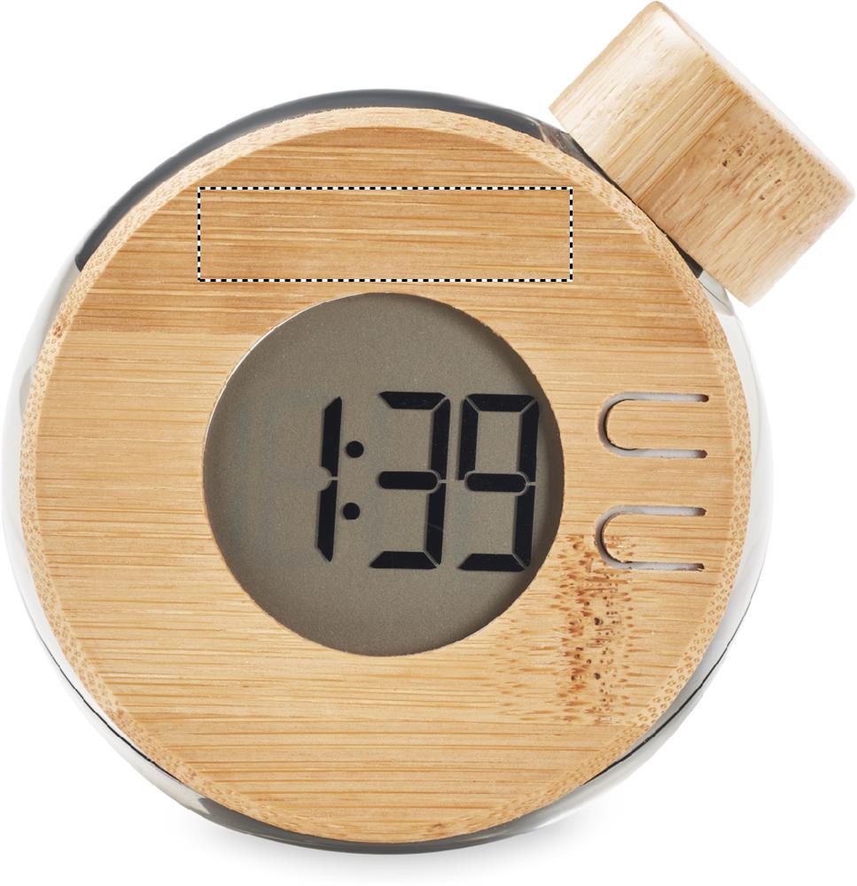 LCD-kello suurella näytöllä, ja jossa on bambusta valmistetut yksityiskohdat. Tämän tuotteen käyttämiseen ei tarvita paristoa, ainoastaan nestettä. Vettä johon on sekoitettu 3g suolaa!