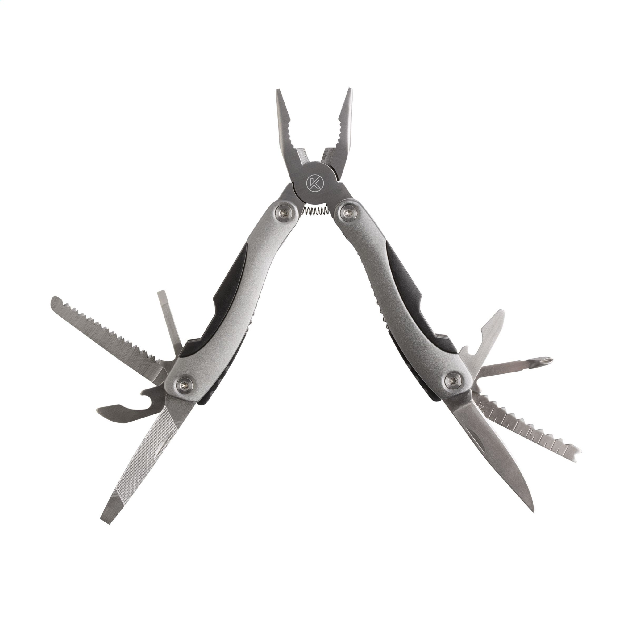 Toimiva ja täydellinen lahjapaketti: 9-osainen ruostumattomasta teräksestä valmistettu monitoimityökalu, jossa 12 toimintoa (pihdit, langanpoistaja, saha, 2 ruuvimeisseliä, tölkinavaaja, kannennostin, viila, veitsi, ristipääruuvimeisseli, kalakaavin, koukunpoistotyökalu) ja alumiinikahva ja metallinen ilme. Alumiininen taskulamppu (Ø 2,7 x 9 cm), jossa 9 kirkkaanvalkoista energiatehokasta LED-valoa ja irrotettava lenkki. paristot sis. Jokainen setti laatikossa. Huomaa, että veitsien tai monitoimityökalujen hallussapitoa ja/tai kantamista julkisilla paikoilla saattaa olla voimassa. Tuotteet toimitetaan sarjana, jokainen sarja erikseen pakattuna.