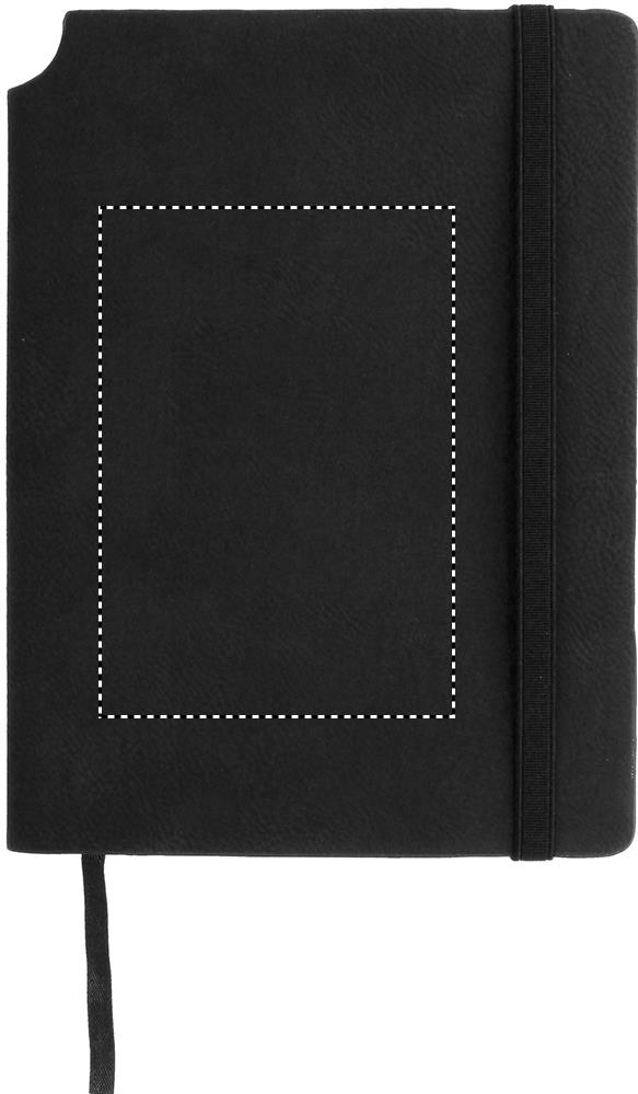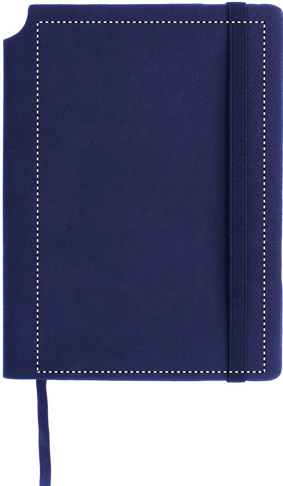 A5 muistikirja pehmeällä PU kannella, 160 viivattua sivua (80 arkkia) sisältää kumilenkin ja kirjanmerkin. Kirjan selkärangassa tilaa kynälle ja takana laajennettava sisätasku