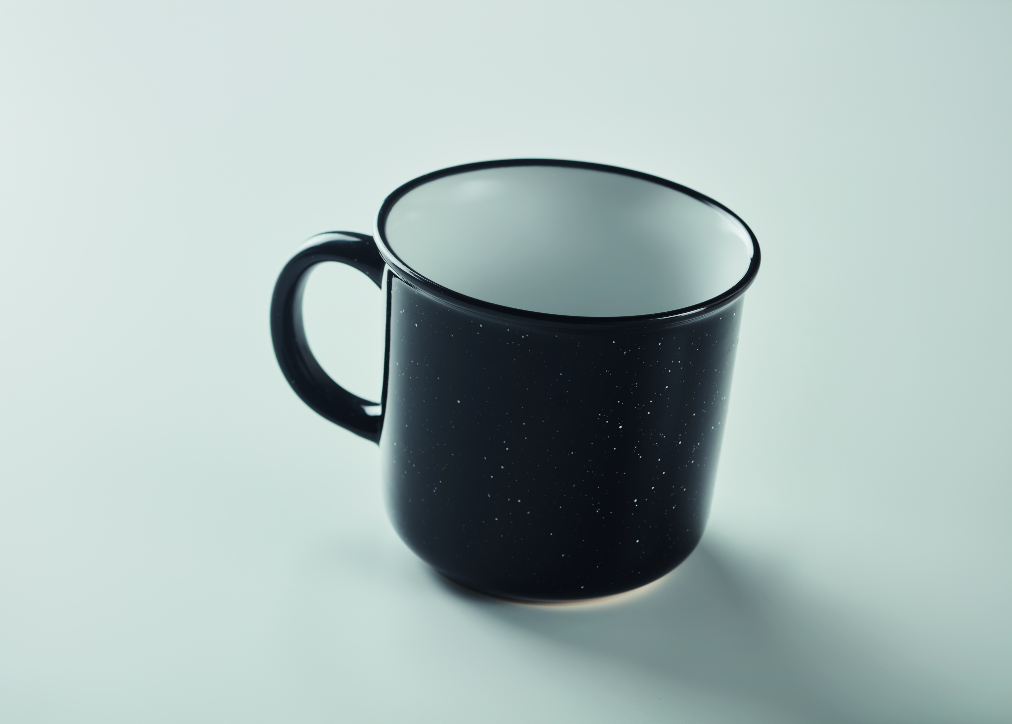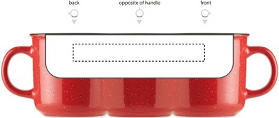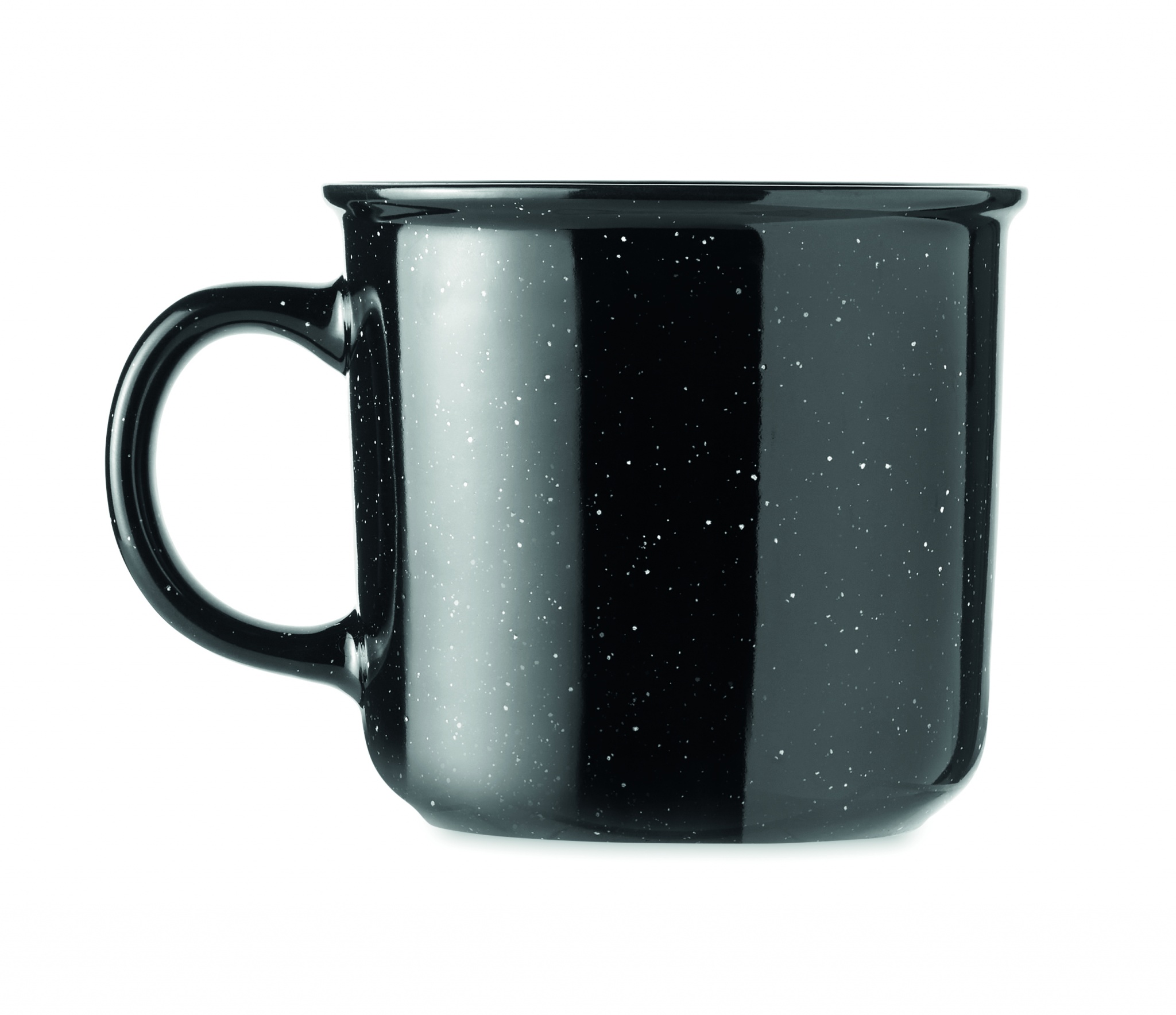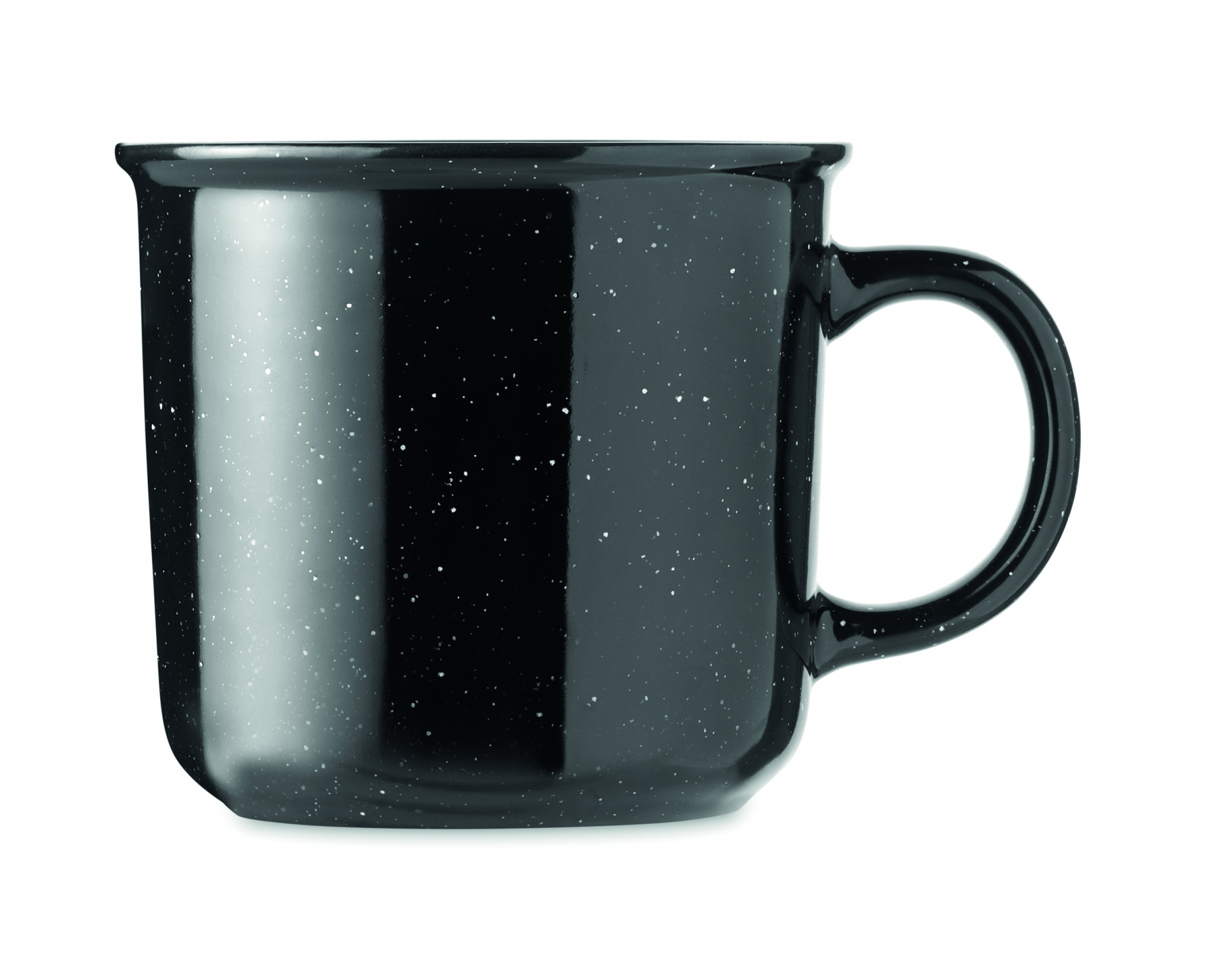 Keraaminen vintage tyylinen 400 ml muki, pilkullisen kuvioinnin vuoksi kuviointi näkyy logossa painatuksen jälkeen.