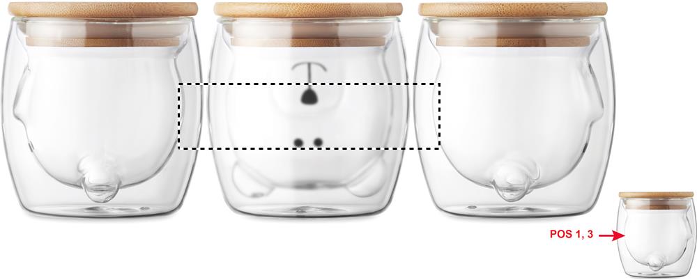 Kaksiseinäinen 260 ml borosilikaattilasi karhunkasvokuvioinnilla ja bambukannella.