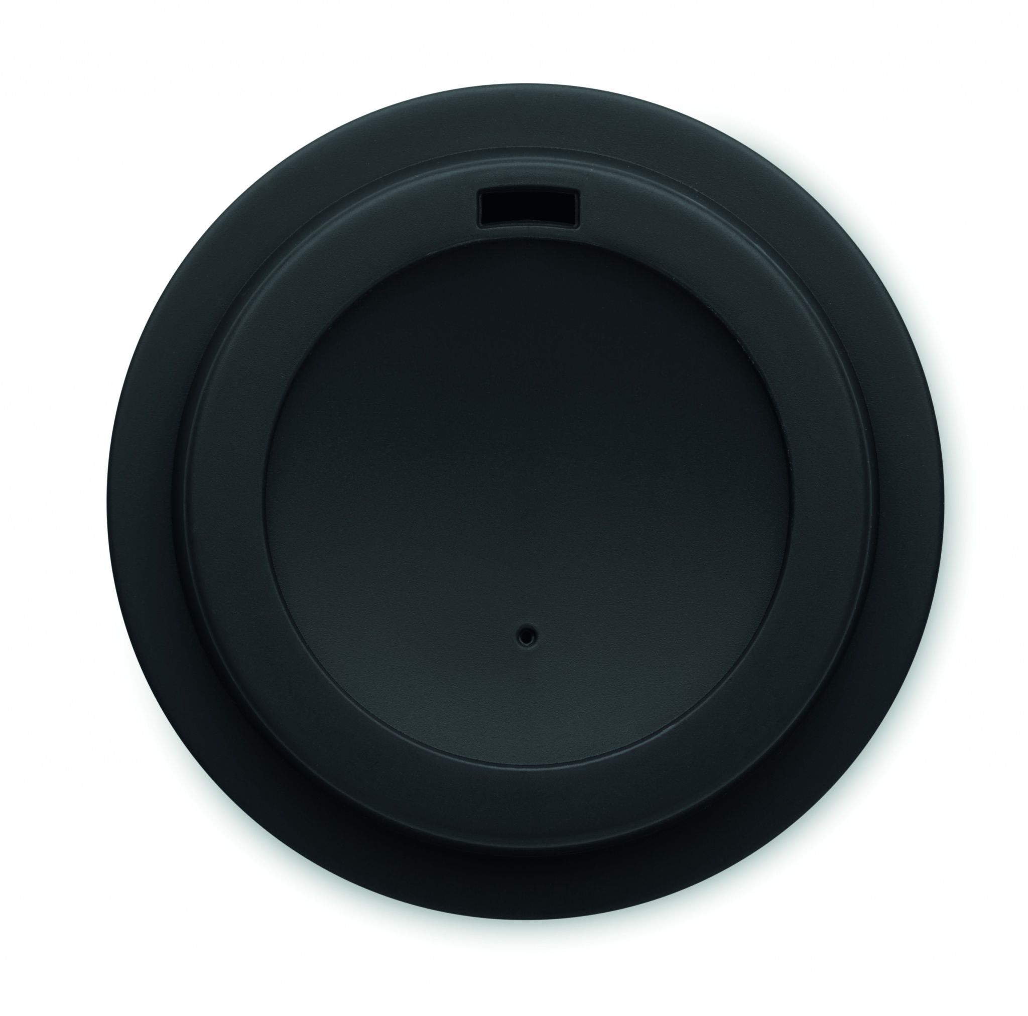 Kaksiseinäinen 300 ml muki PP kannella. Yksinkertainen tumbler-muki, joka pitää juomasi lämpimänä pitkään. Kannessa on juoma-aukko.