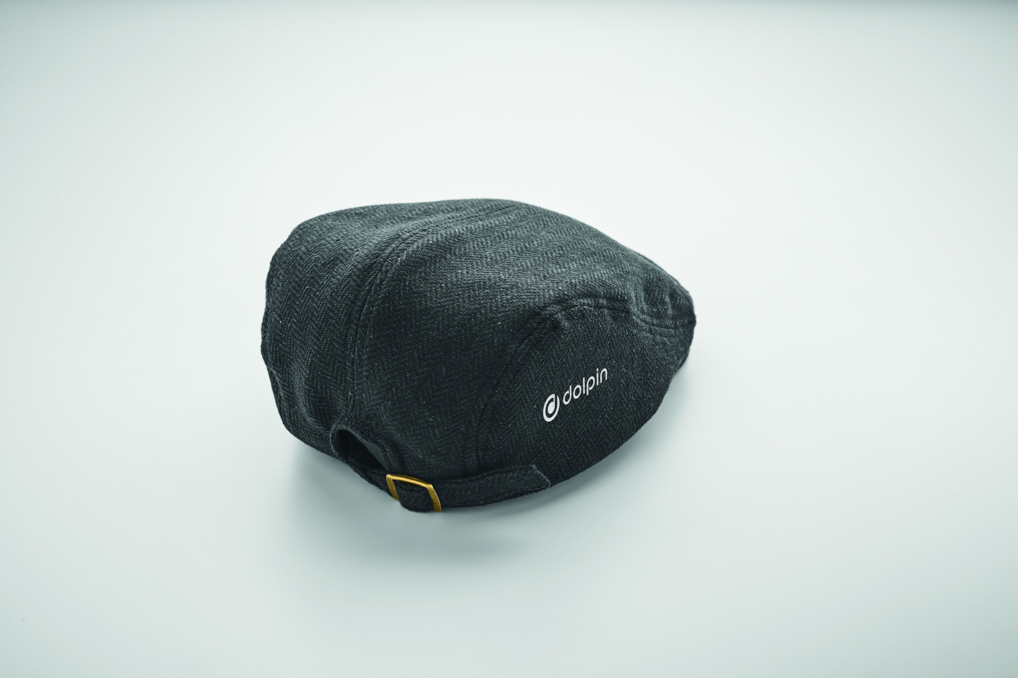 Newsboy-lippalakki, meleerattu 335 g/m² polyesteristä, jossa metallinen solki.
