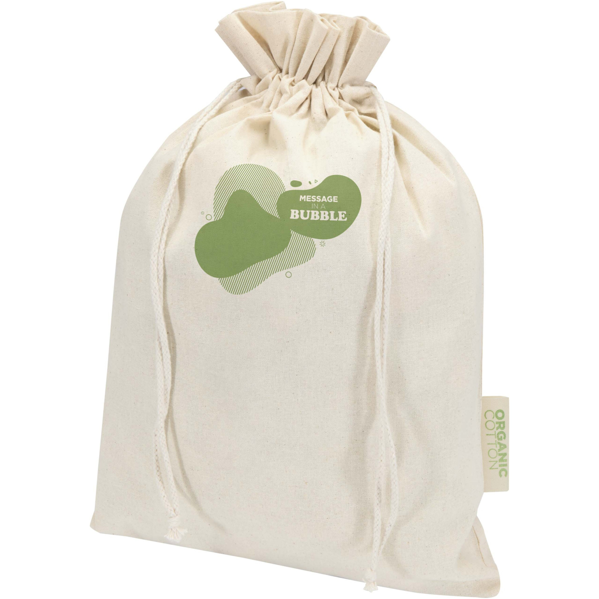 Lahjakassi, joka on valmistettu 100-prosenttisesti OCS-sertifioidusta 140 g/m²:n luomupuuvillasta ja jossa on puuvillainen kiristysnyöri. Ihanteellinen lahjapussiksi tai tavaroiden säilyttämiseen. Koko: 42 x 30 cm.