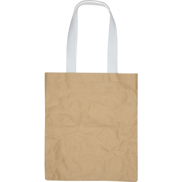 Kestävä ostoskassi, jossa pitkät kahvat, pehmustettu sisältä ja paperivuori ulkopuolelta, kestävä ja ympäristöystävällinen. Logosi painetaan toiselle puolelle.