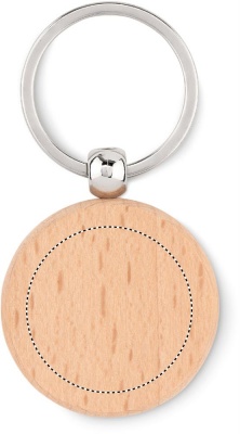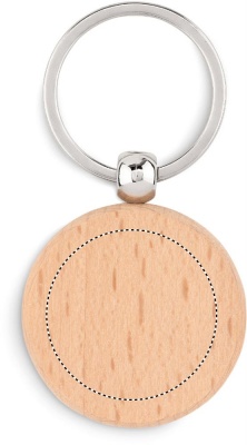 Pyöreän muotoinen avainperä puusta ja metallisella avainlenkillä.
