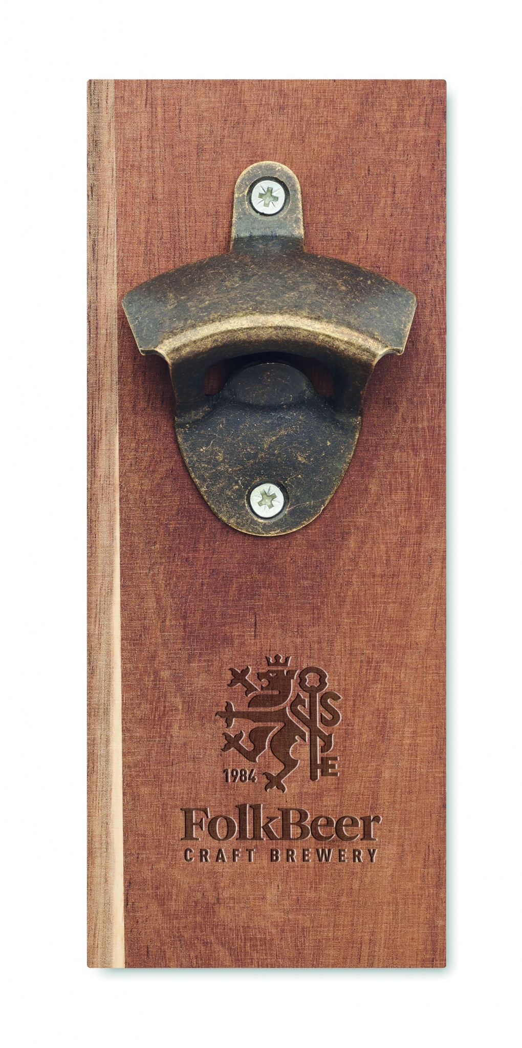 Seinään kiinnitettävä pullonavaaja akaasiapuusta ja raudasta. Avaajassa on voimakas magneetti joka nappaa korkit ja josta avaajan voi kiinnittää jääkaapinoveen tai grilliin.