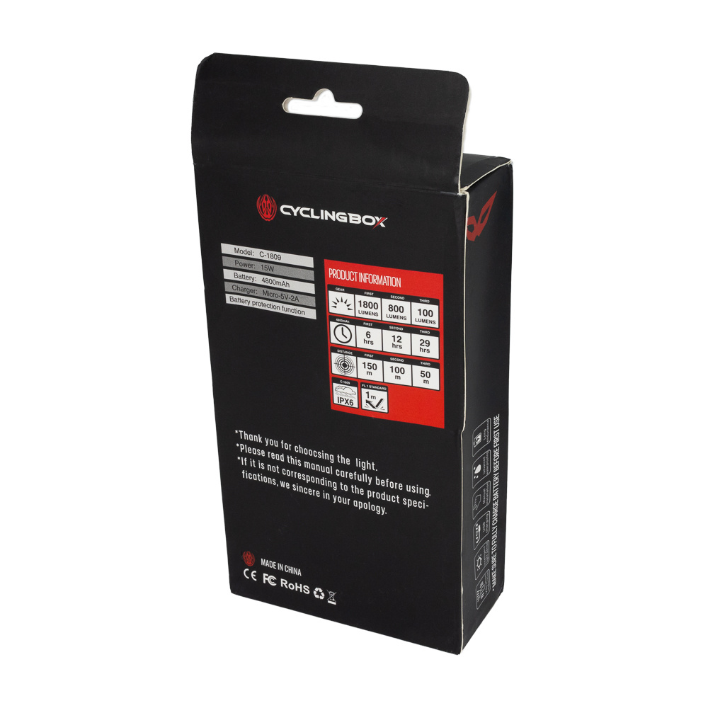 Tämä moderni USB Type-C ladattava pyörävalo tarjoaa sinulle erinomaisen valaistuksen pyöräilyn aikana ja antaa sinulle turvallisuuden tunteen myös yömatkoilla. Suuren kapasiteetin 4800 mAh akun ansiosta pyöränvalomme takaa pitkäkestoisen ja luotettavan suorituskyvyn. Akku voi helposti tuottaa tarpeeksi virtaa valaisemaan matkaasi pitkäksi aikaa ilman jatkuvaa latausta.