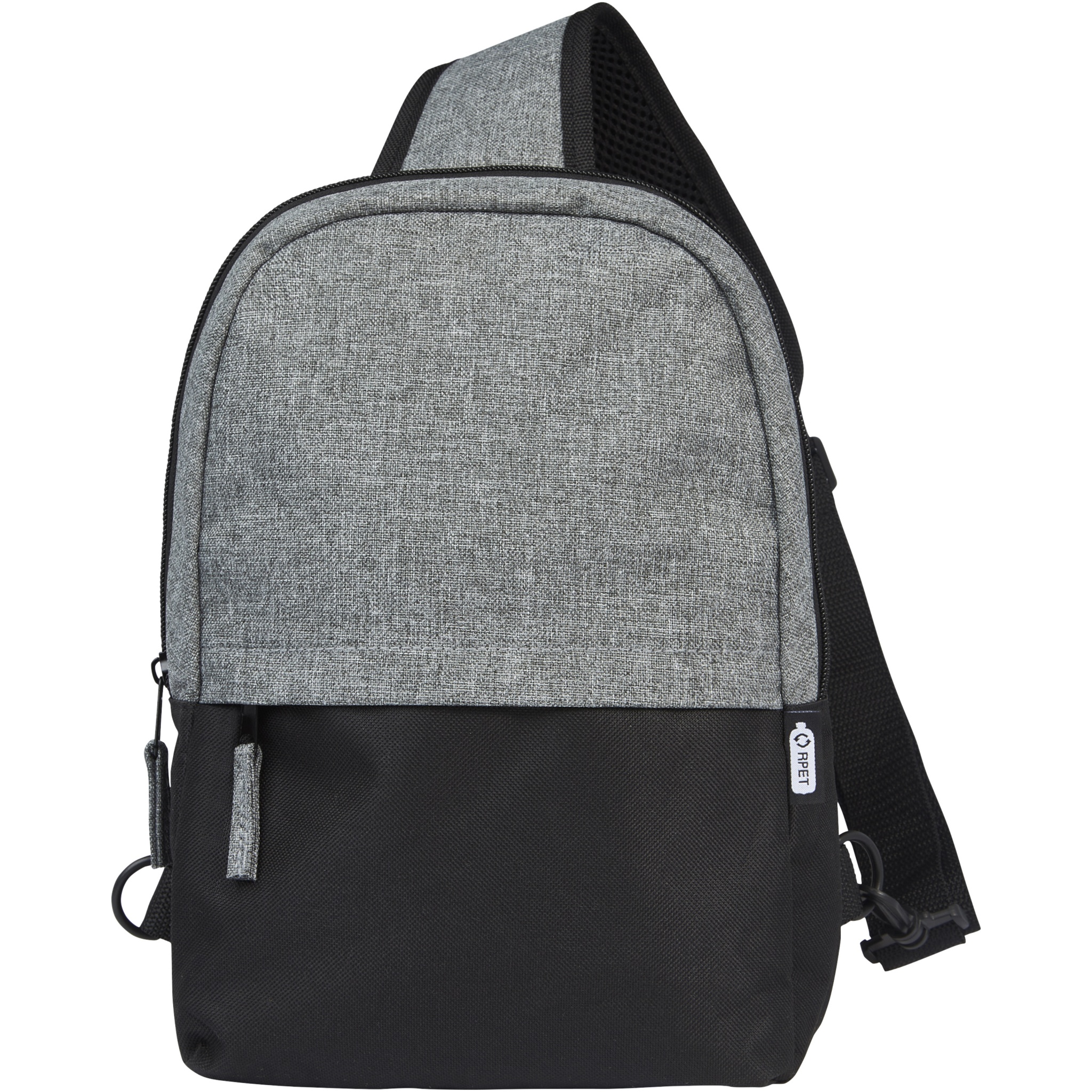 Ulkopuoleltaan 100-prosenttisesti kierrätysmateriaaleista valmistetussa kaksivärisessä GRS-kierrätetyssä sling-laukussa on yksi vetoketjullinen etutasku sekä vetoketjullinen päälokero, jossa on suojatasku 12 tuuman tabletille. Siinä on myös vetoketjullinen sisätasku turvallista säilytystä varten, ja sen täysin säädettävän ja pehmustetun olkahihnan ansiosta laukkua on mukava kantaa.