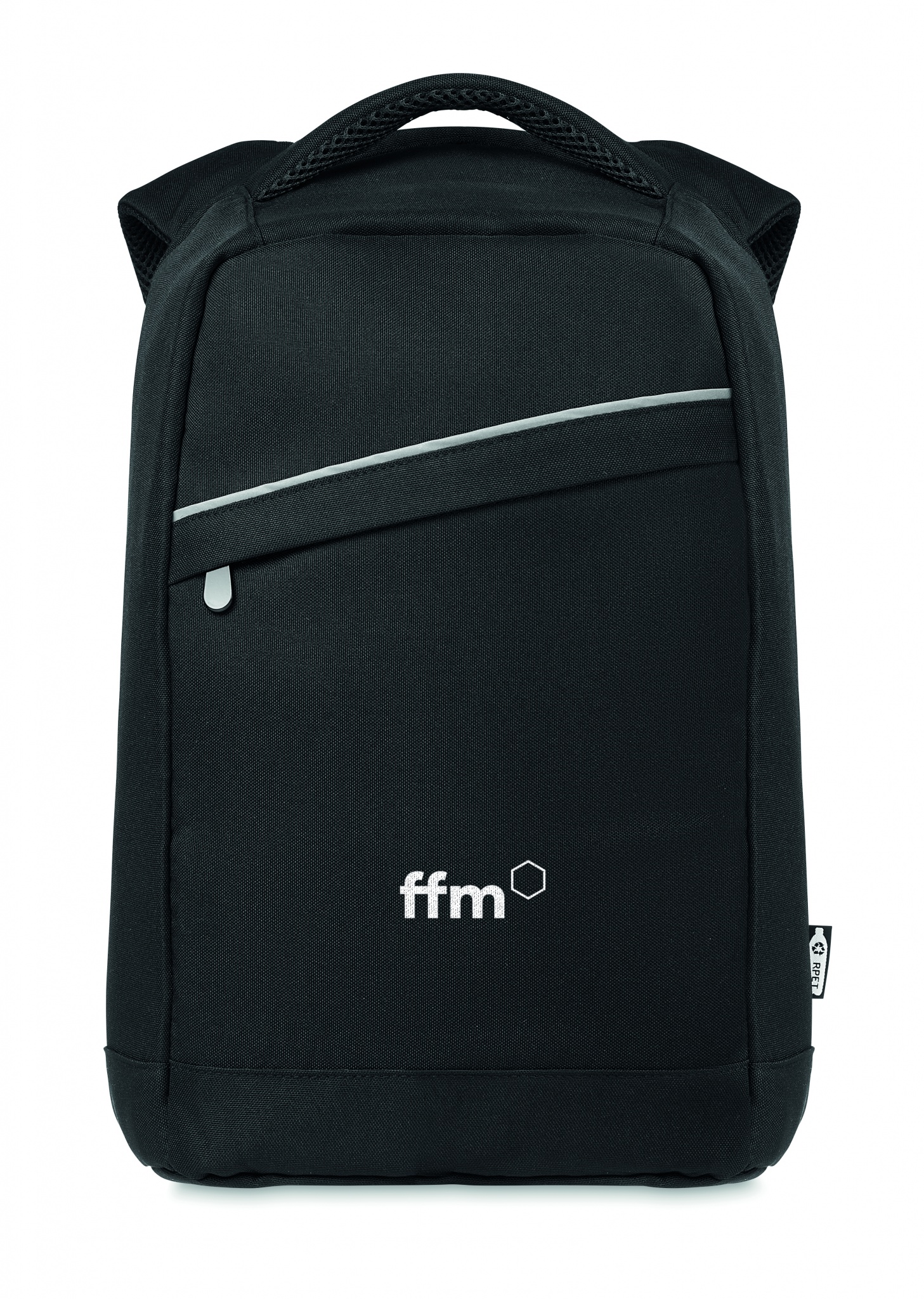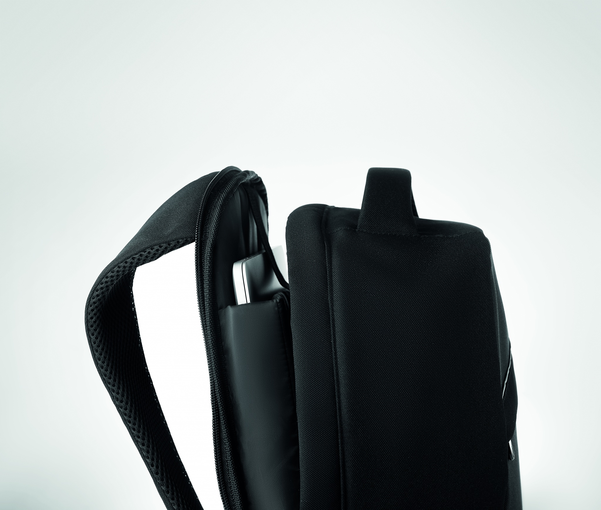600D RPET reppu, pehmustetuilla olkahihnoilla. 13 tuuman kannettavan tietokoneen tasku, paremman turvan tuomiseksi vetoketju on repun takaosassa.