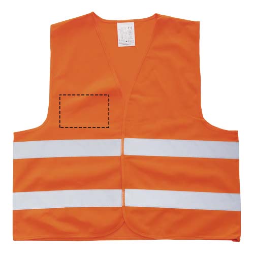 Korkean näkyvyyden varoitusliivi, luokka 2, sopii 165–180 cm pitkille henkilöille. Suuri painatusalue liivin etu- ja takapuolella. Heijastinvaatteet ammattikäyttöön. Fluoresoiva tausta ja heijastava teippi. Standardit EN ISO 20471:2013+A1:2016. Näiden vaatteiden CE-merkintä osoittaa, että ne täyttävät EU-asetuksen 2016/425/EU vaatimukset luokan II henkilösuojaimille.