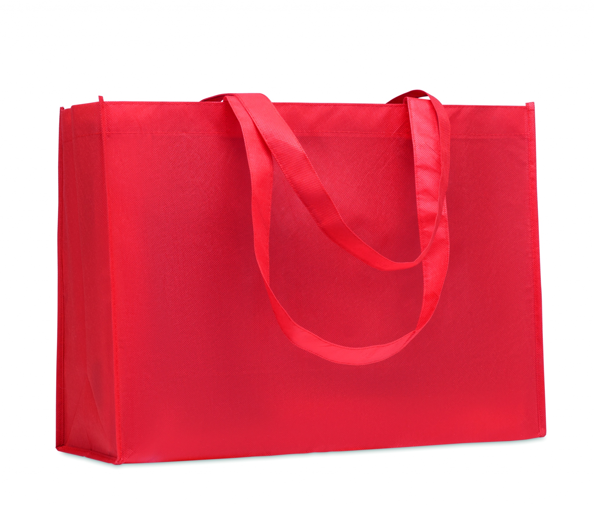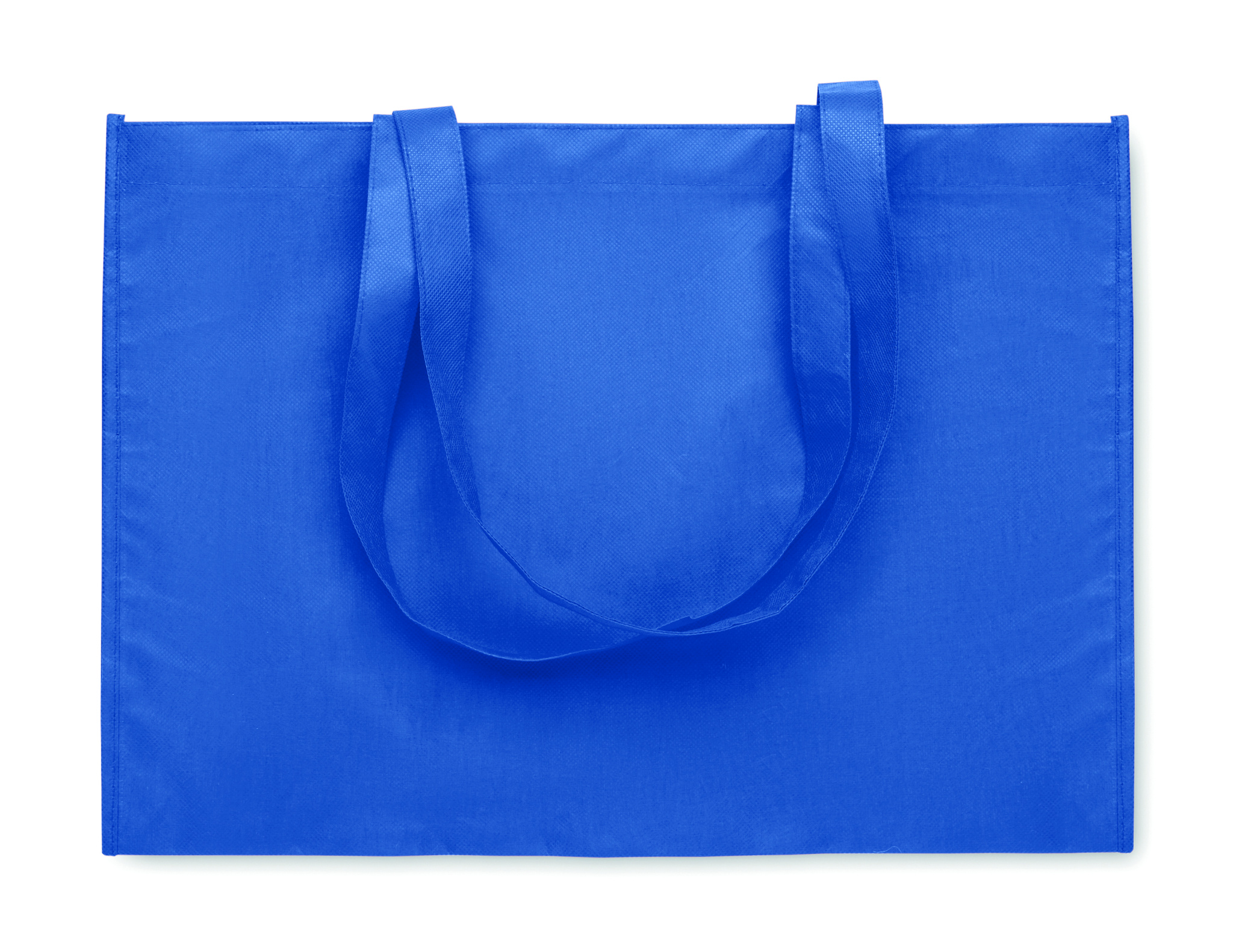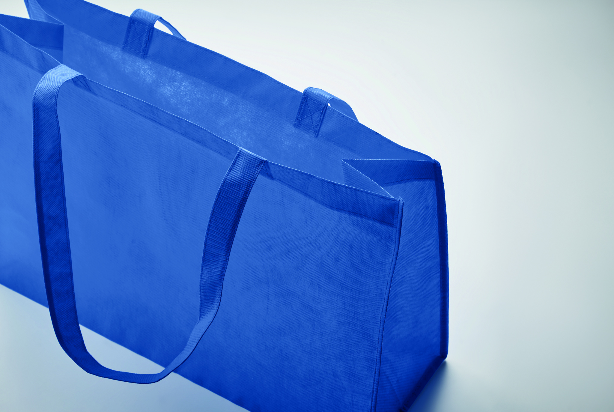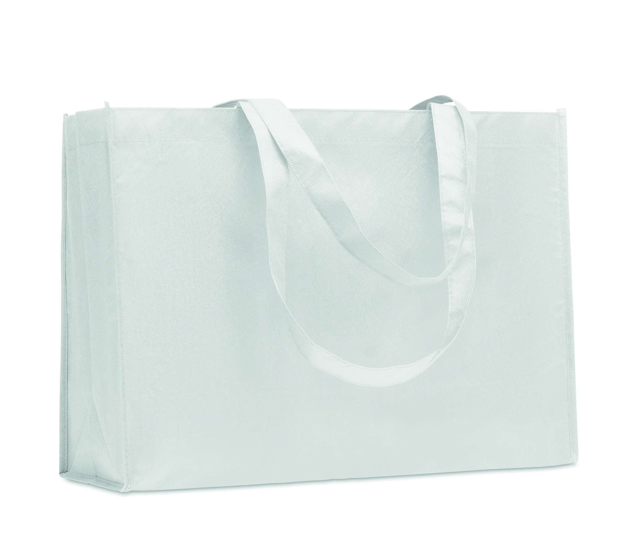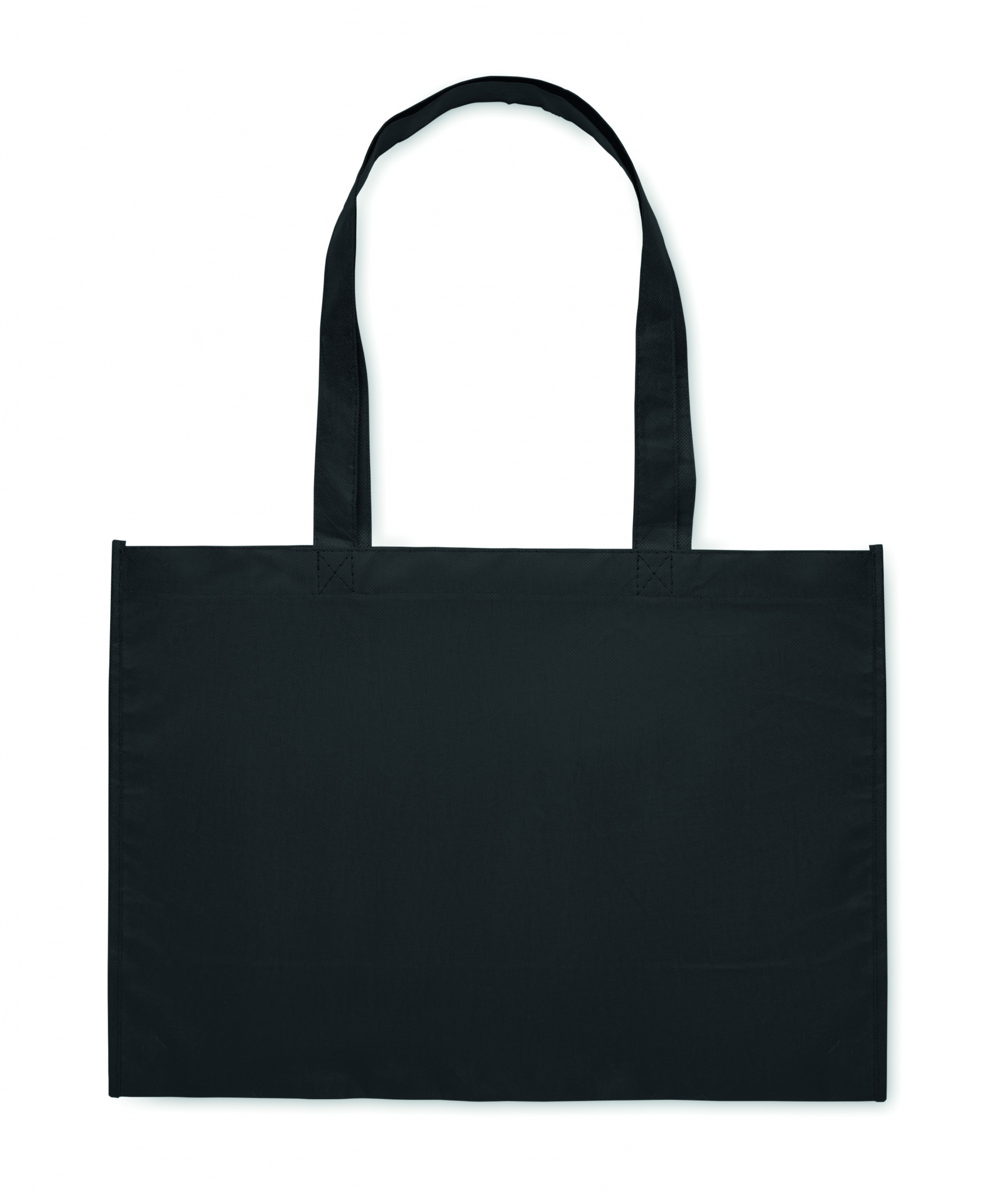 RPET-kuitukankaasta valmistettu ostos- tai rantakassi, jossa on sivupalat ja pitkät kahvat. 80 gr/m².