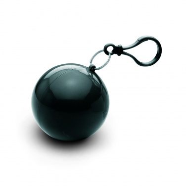 Läpinäkyvä PE-sadeviitta pakattuna AS-muovi palloon. Pallossa karabiinikouku, karabiinikoukkua ei ole tarkoitettu kiipeilyyn.
