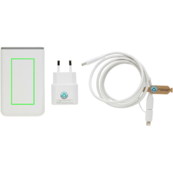 3 kpl 20W pikalataussetti mobiililaitteille ja muille pienille laitteille. EU-sovittimella, jossa on 20 W USB-C -portti, 5 000 mAh virtalähde ja 120 cm kierrätetty TPE 60 W pikalatauskaapeli (USB-C USB / Lightning). Kaapeli tukee tiedonsiirtoa ja myös suurempien laitteiden kuten kannettavien tietokoneiden lataamista. Sovitin, virtalähde ja kaapeli on valmistettu RCS-sertifioidusta kierrätetystä PC:stä, ABS:stä ja kierrätetystä TPE:stä. Pakattu pussiin, joka on valmistettu RCS-sertifioidusta kierrätetystä PET:stä. Koko sarjan kierrätyssisältö: 59 % tuotteen kokonaispainosta. RCS-sertifiointi varmistaa kierrätysmateriaalien täysin sertifioidun toimitusketjun. Pakattu FSC® pakkaukseen. PVC-vapaa. Tulolaturi AC 100-240V 50/60Hz 0,6A; Ulostulo seinälaturi USB-C: 5.0V⎓3.0A, 9.0V⎓2.22,12.0V⎓1.67A (20W Max). Lähtövirtalähde 5V⎓2.4A -C Tulo: 5V⎓2.4A