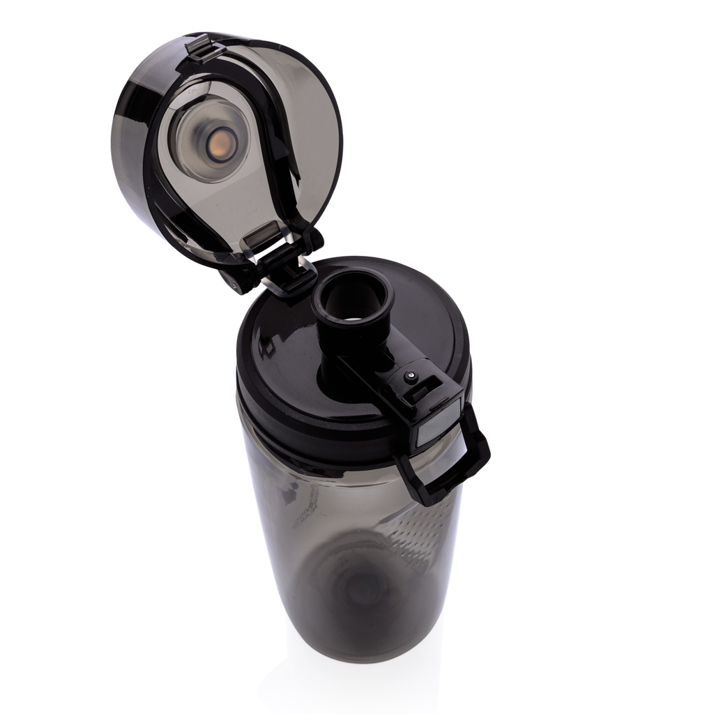 Swiss Peak urheilujuomapullo tritaanista sopii käteesi yhtä hyvin kuin se sopii urheilukassiisi. Sen lisäksi siinä on lukittava kansi, jonka muotoilu estää vuodot ja läikkymiset. Pullossa on liukumisen estoksi silikoniyksityiskohta, ja napilla toimiva nokka. Sisäänrakennettu kahva kannessa helppoa kantamista varten. Tilavuus 700ml. BPA-vapaa.