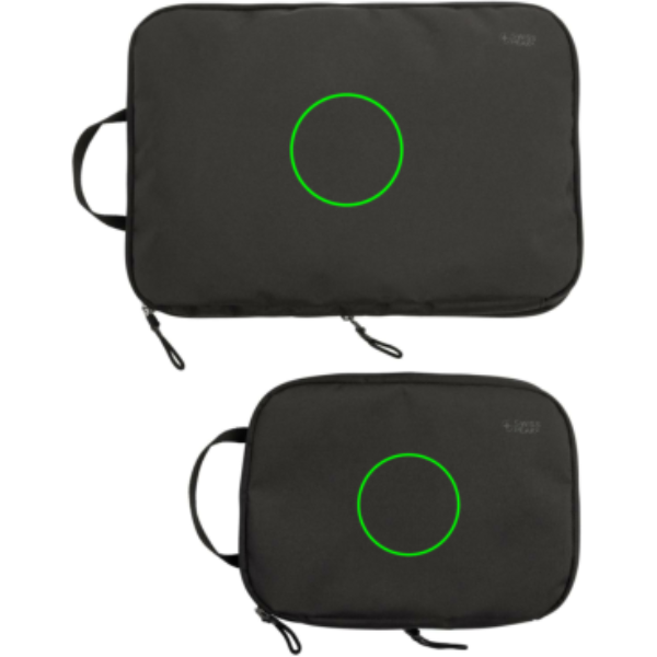 Kahden pakkauskuution sarja, joka on valmistettu 100 % RPET:stä ja joka voi laajentua ja kutistua pakkaustilan optimoimiseksi, auttaa sinua pakkaamaan tehokkaammin. AWARE™-jäljitysaineella, joka vahvistaa kierrätetyn polyesterin aidon käytön.