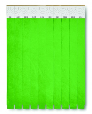 Yksi arkki 10 tapahtumaranneketta. DuPont ™ Tyvek® 19 mm leveä, sisältää yksilöllisen numeroinnin jokaisessa rannekkeessa.