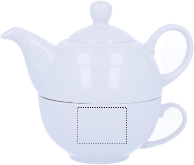 Teesetti sisältää 400 ml teekannun ja valkoisen keraamisen kupin, pakattuna mustaan lahjapakkaukseen. Tampopainatus kestää vain käsinpesun, keraaminen painatus on konepesun kestävä.