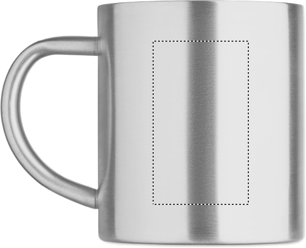 Kaksinkertainen kierrätetystä ruostumattomasta teräksestä (90 % kierrätettyä ruostumatonta terästä ja 10 % ruostumatonta terästä) valmistettu muki. Tilavuus: 260 ml.
