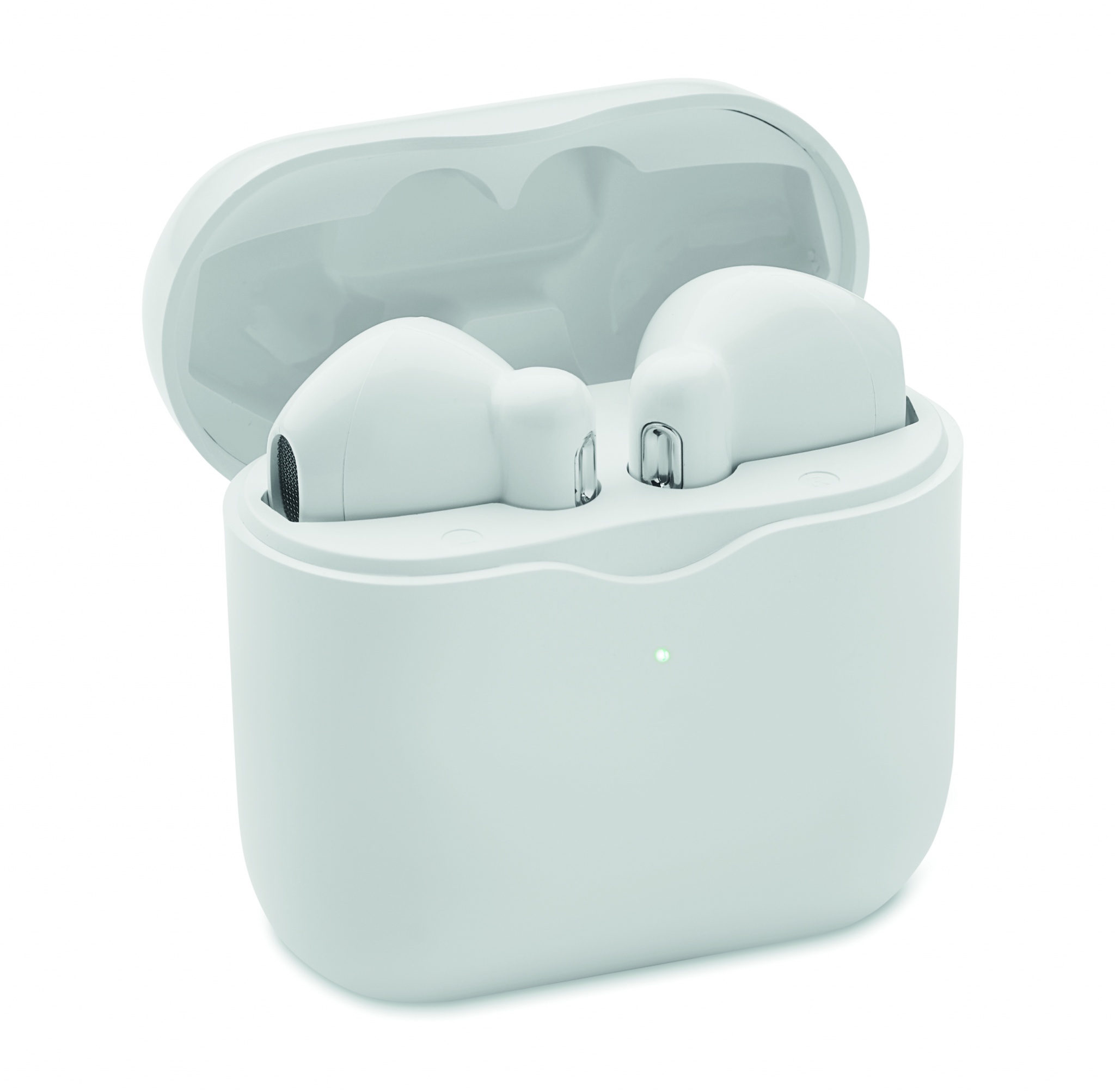 ABS True Wireless Stereo (TWS) 5.3 langattomat stereokuulokkeet mikrofonilla ja 30 mAh:n sisäänrakennetulla ioniparistolla sekä 200 mAh:n latausrasialla. Toistoaika n. 4 tuntia. Automaattinen pariliitos.