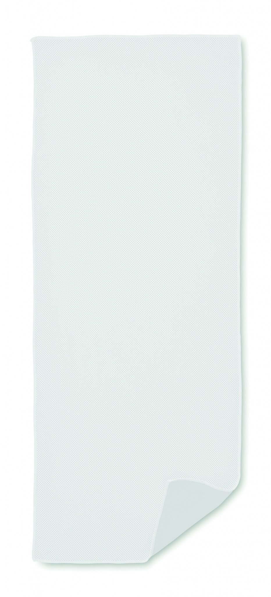 Urheilupyyhe valmistettu 55% polyamidista ja 45% mikrokuidusta, korkea vedenimukyky.