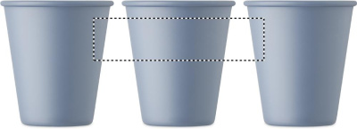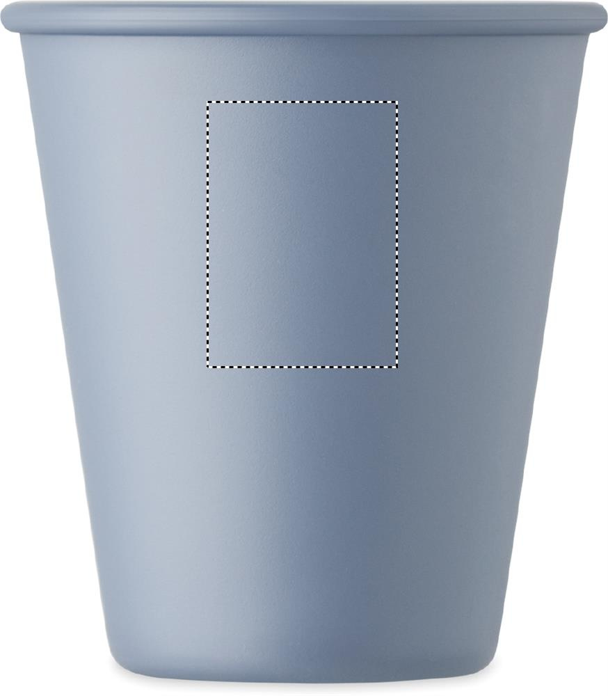 Uudelleenkäytettävä yksiseinäinen muki PLA-maissimuovista. Tilavuus: 200 ml. Koska kyseessä on yksiseinäinen muki, lämmönsiirtoa voi silti tapahtua.