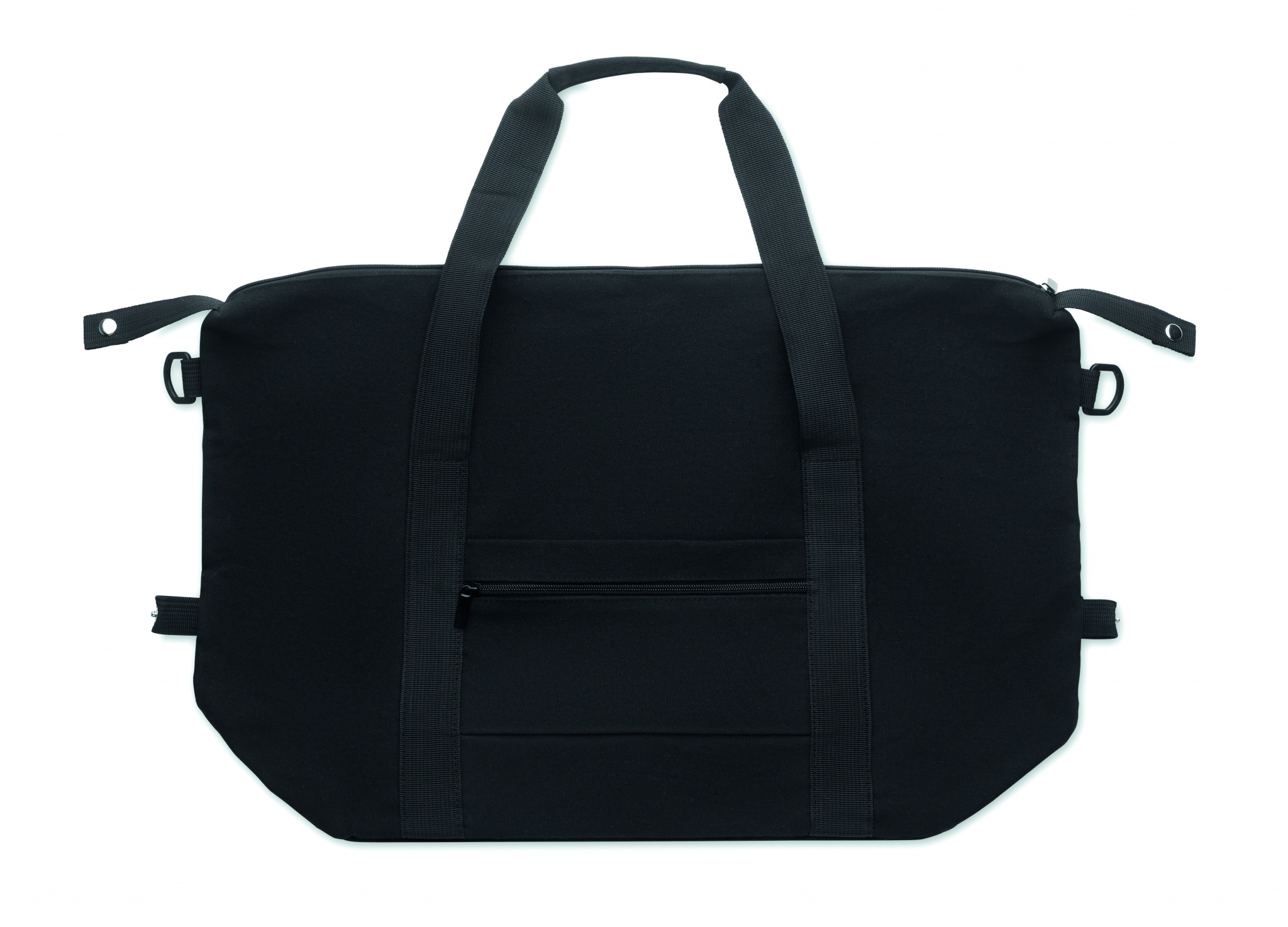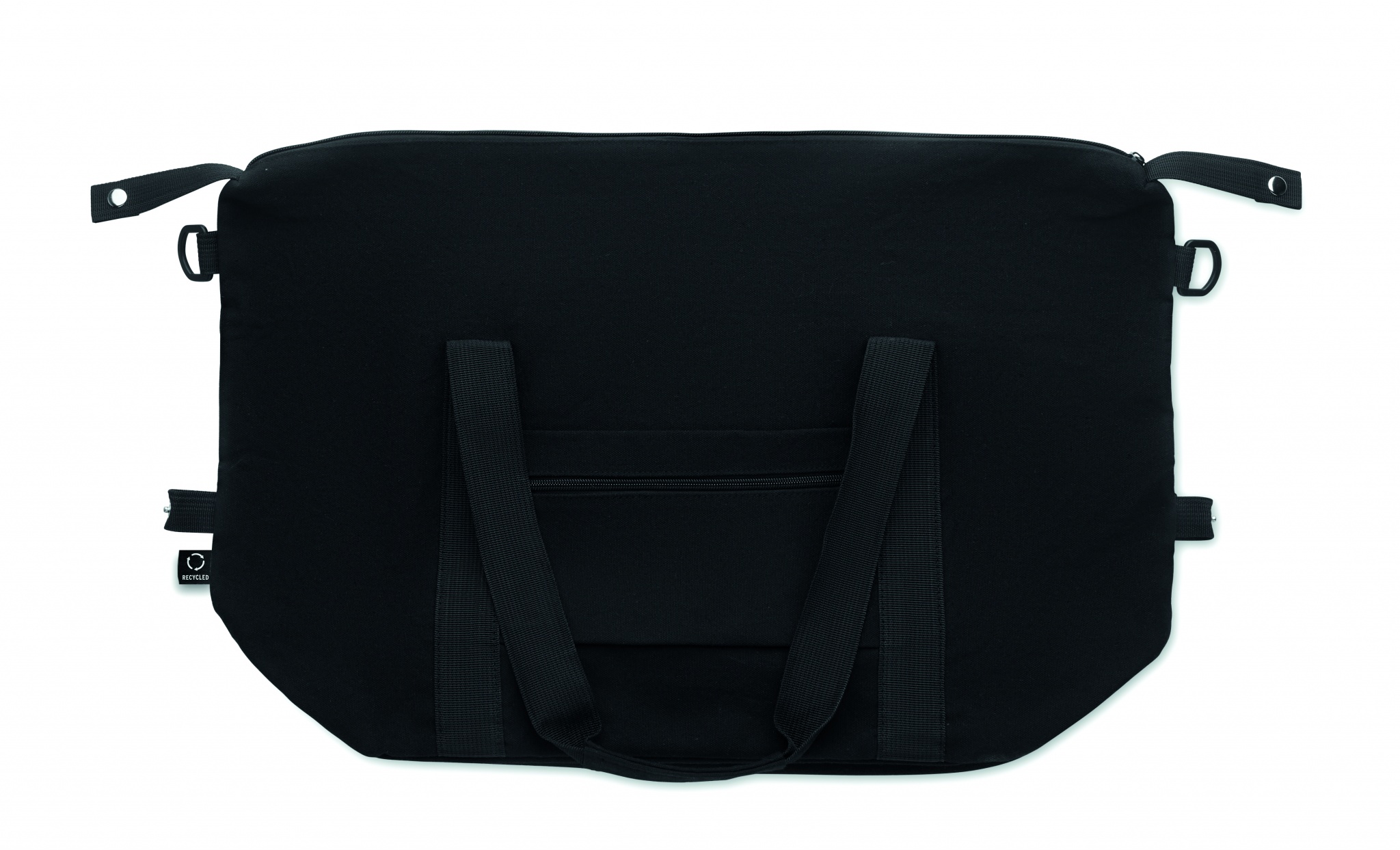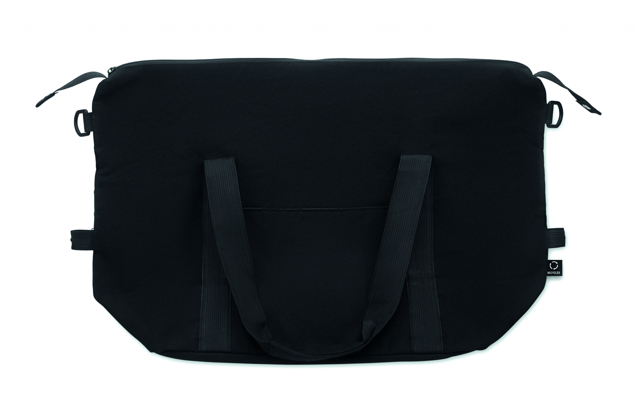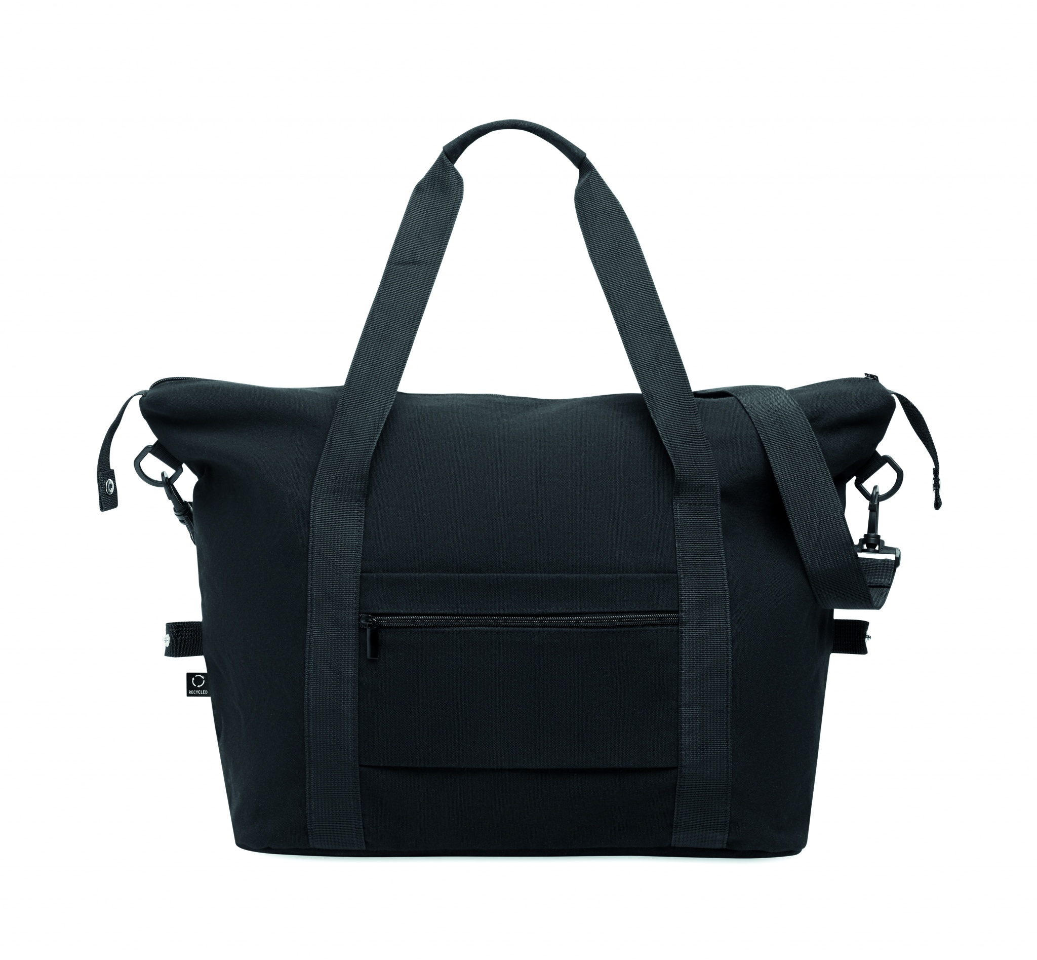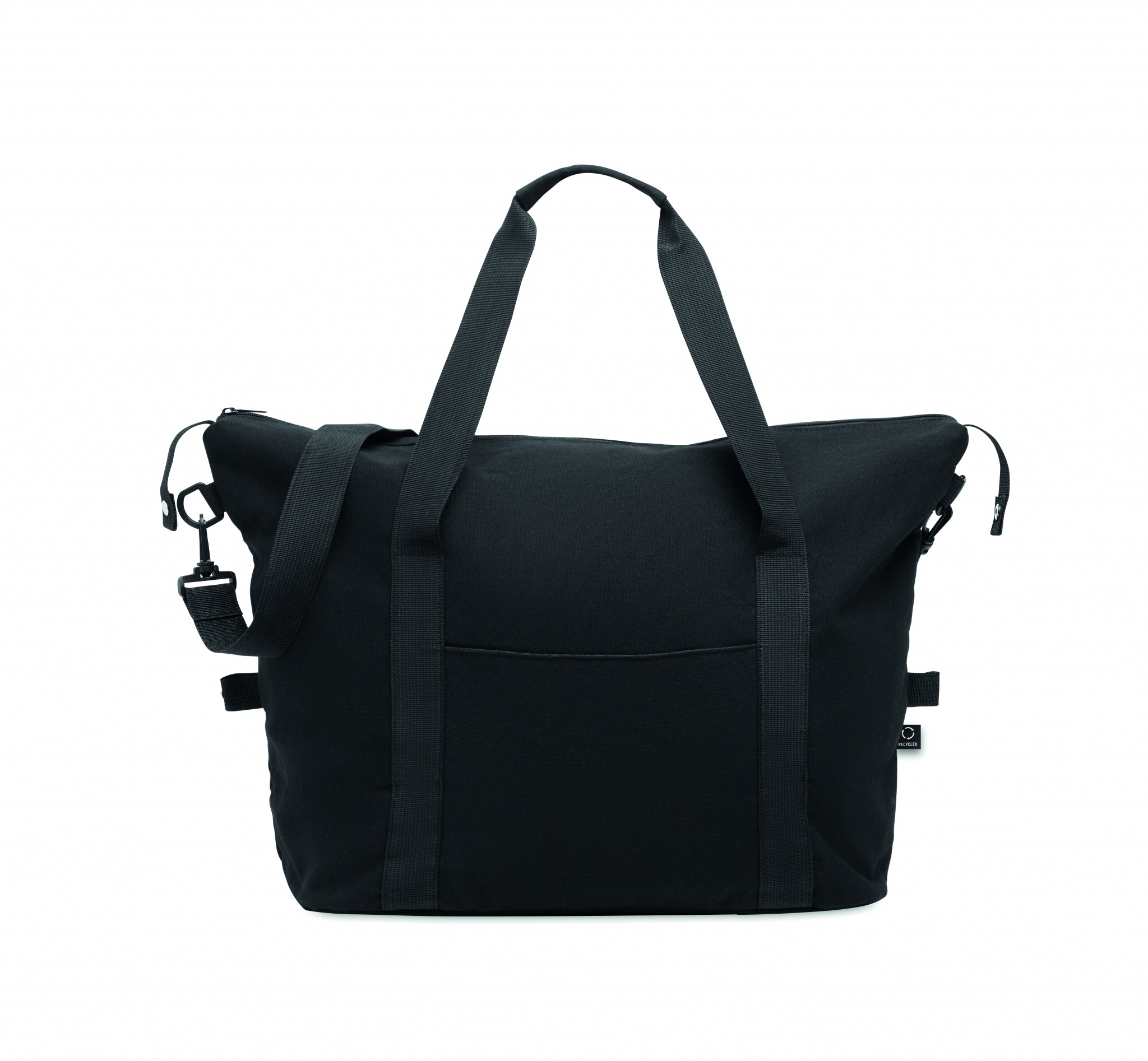 Viikonloppulaukku kierrätetystä esikulutetusta puuvillasta ja kierrätetystä polyesteristä (70 % / 30 %), vuori 210D RPET-polyesteriä. Laukussa on liukutasku edessä, vetoketjullinen takatasku, irrotettava ja säädettävä olkahihna sekä pehmustettu pohja. Trolleypidike.