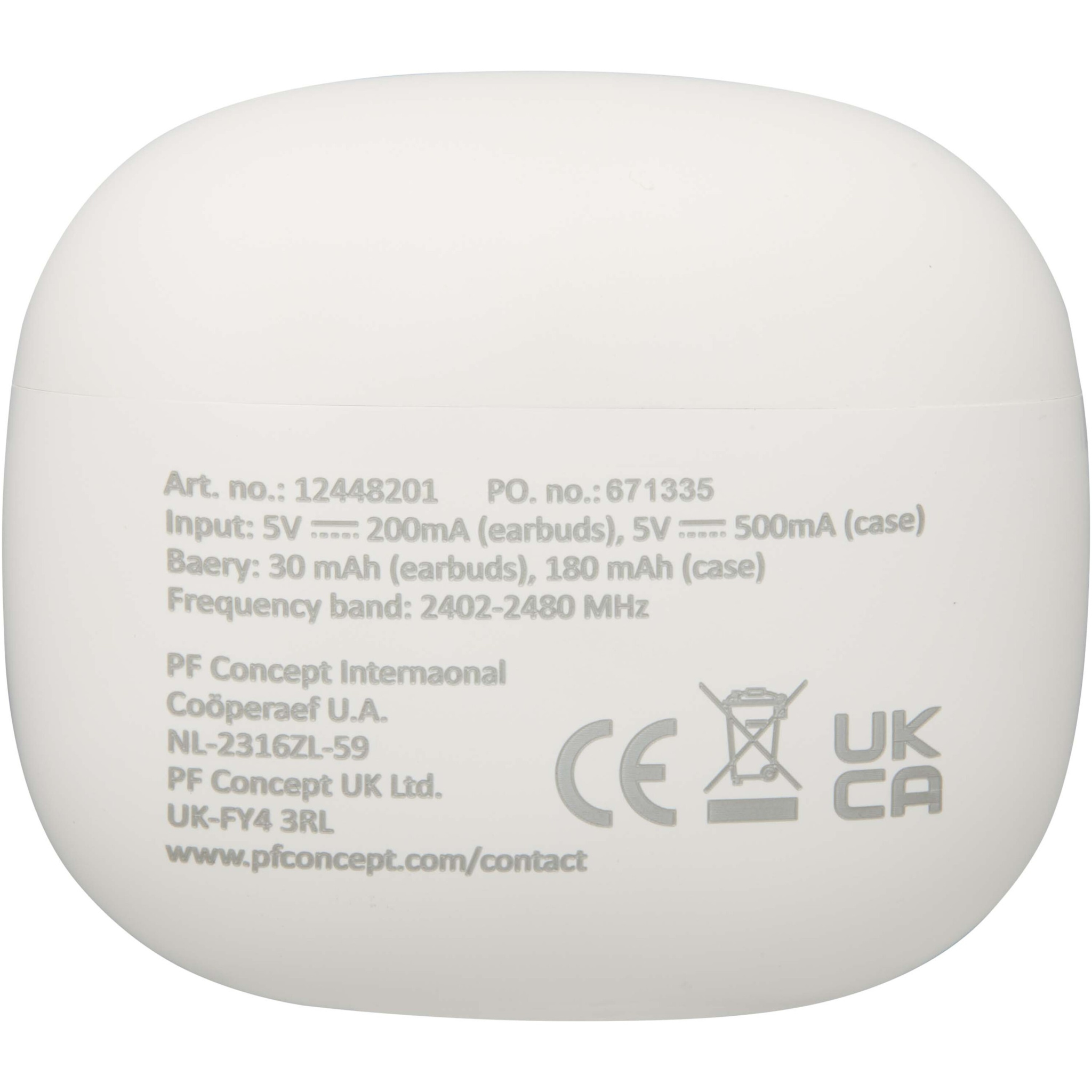 Mėgaukitės stilingu belaidžiu garsu su „Alterf TWS Bluetooth®“ ausinėmis. Šios stereofoninės ausinės pagamintos iš perdirbto plastiko ir turi minkštus silikoninius ausų antgalius, kad būtų patogu nešiotis. Jos parduodamos su kompaktišku įkrovimo dėklu. Su „Bluetooth® 6.0“ ryšiu jos gali klausytis arba kalbėti iki 4 valandų, o įkraunamos vos per 1–1,5 valandos. Pridedamas 30 cm USB-A–C tipo įkrovimo laidas.