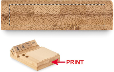 Bambukinis stalinis kalendorius su telefono laikiklio funkcija, 2 rašiklių laikikliais ir 50 lipnių lapelių.