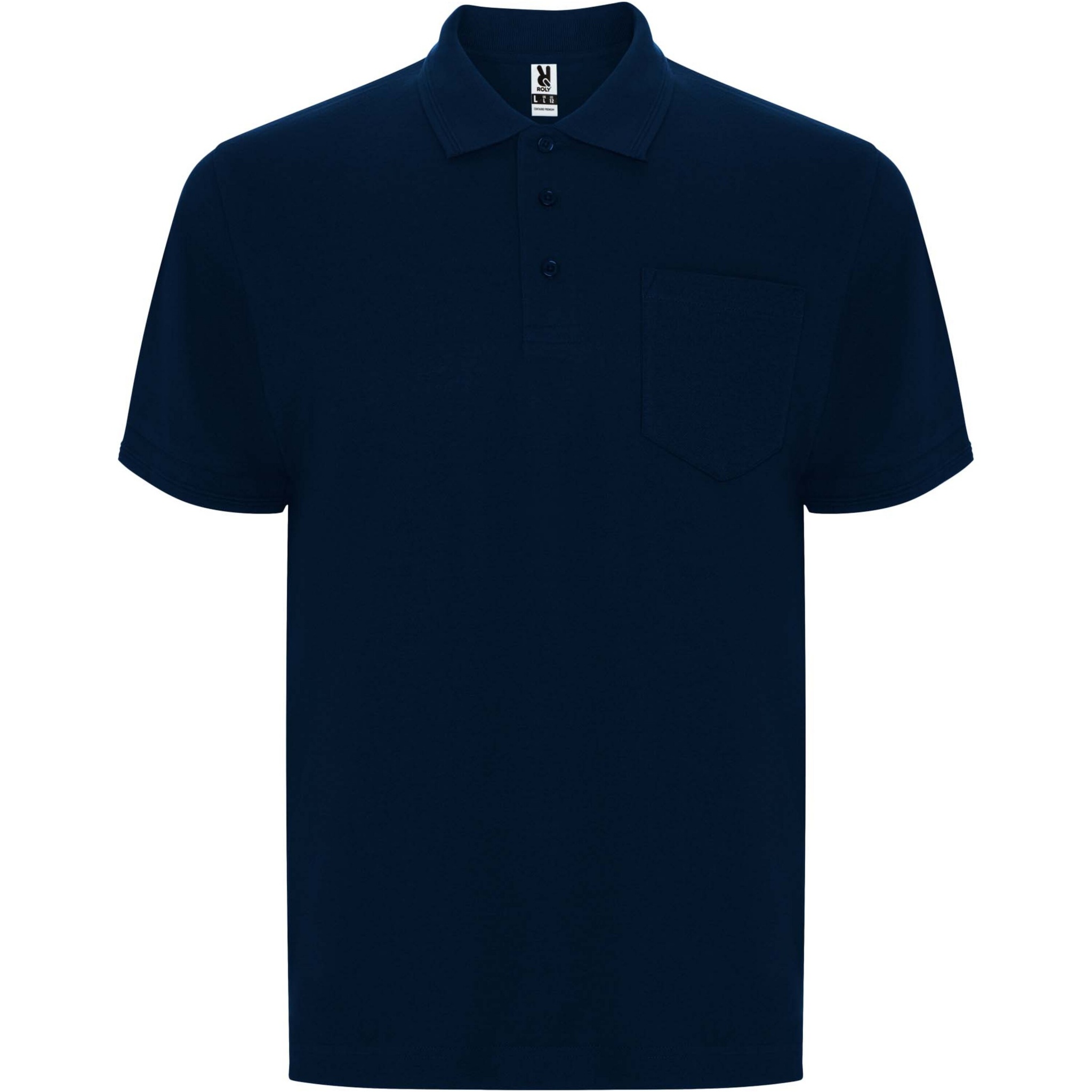 Polo marškinėliai trumpomis rankovėmis su kišene kairėje krūtinėje. Apykaklė ir rankogaliai iš 1x1 rumbuoto audinio su detalėmis. 3 mygtukų kištukas. Sustiprintos dengtos siūlės apykaklėje. Nuimama etiketė. Apsauginis gydymas.