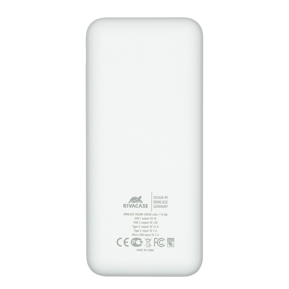 Išorinė baterija VA2081 20000 mAh RIVACASE, balta
