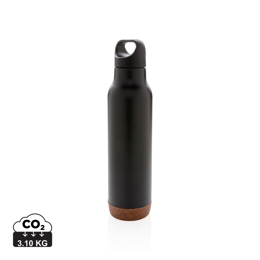 Vakuuminė izoliacija nepralaidi kolba su patvariu 304 SS viduje ir 201 išorėje. Unikali kamštienos detalė apačioje. Išlaiko jūsų gėrimus karštus iki 5h ir šaltus iki 15h. Sudėtis: 600 ml.