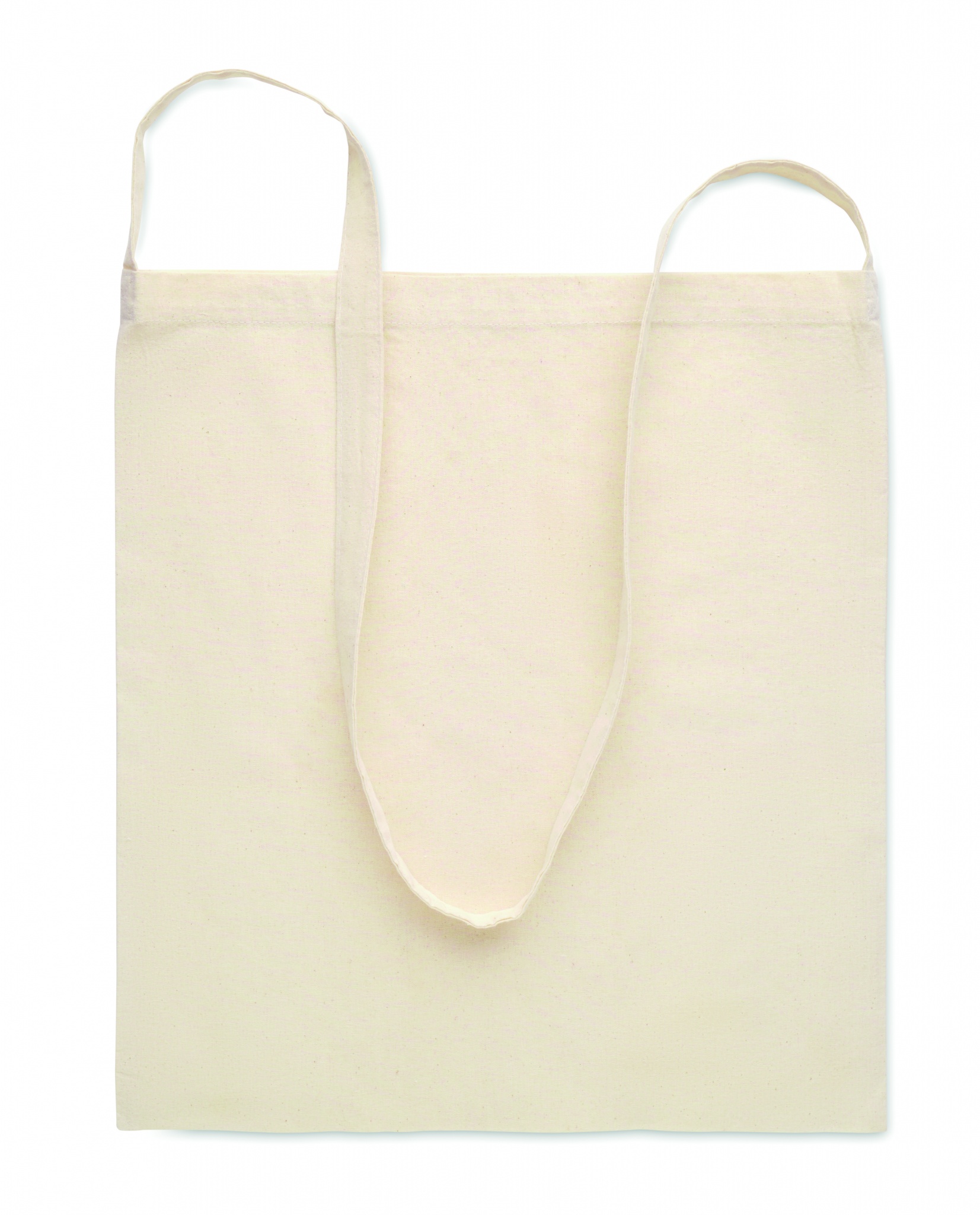 Medvilninis pirkinių krepšys su viena ilga kryžmine peties rankena. 140 gr/m².