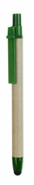 Stumiamas rutulinis rašiklis, pagamintas iš perdirbtos kartoninės vamzdžio ir ABS taško bei spaustuko. Mėlynas rašalas, papildymas ir minkštas antgalis.