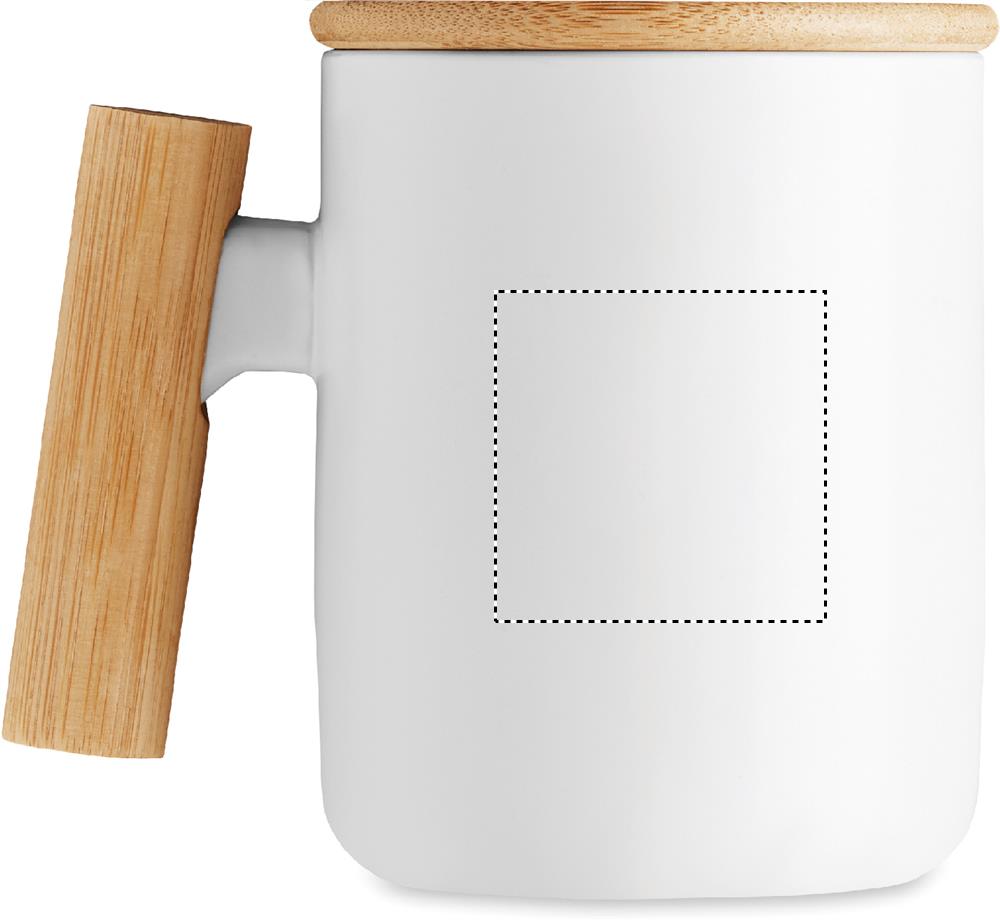 Porcelianinis puodelis su bambukiniu dangteliu ir rankena. Talpa: 380 ml. Bambukas yra natūralus produktas, gali šiek tiek skirtis kiekvieno gaminio spalva ir dydis, o tai gali turėti įtakos galutiniam dekoravimo rezultatui.