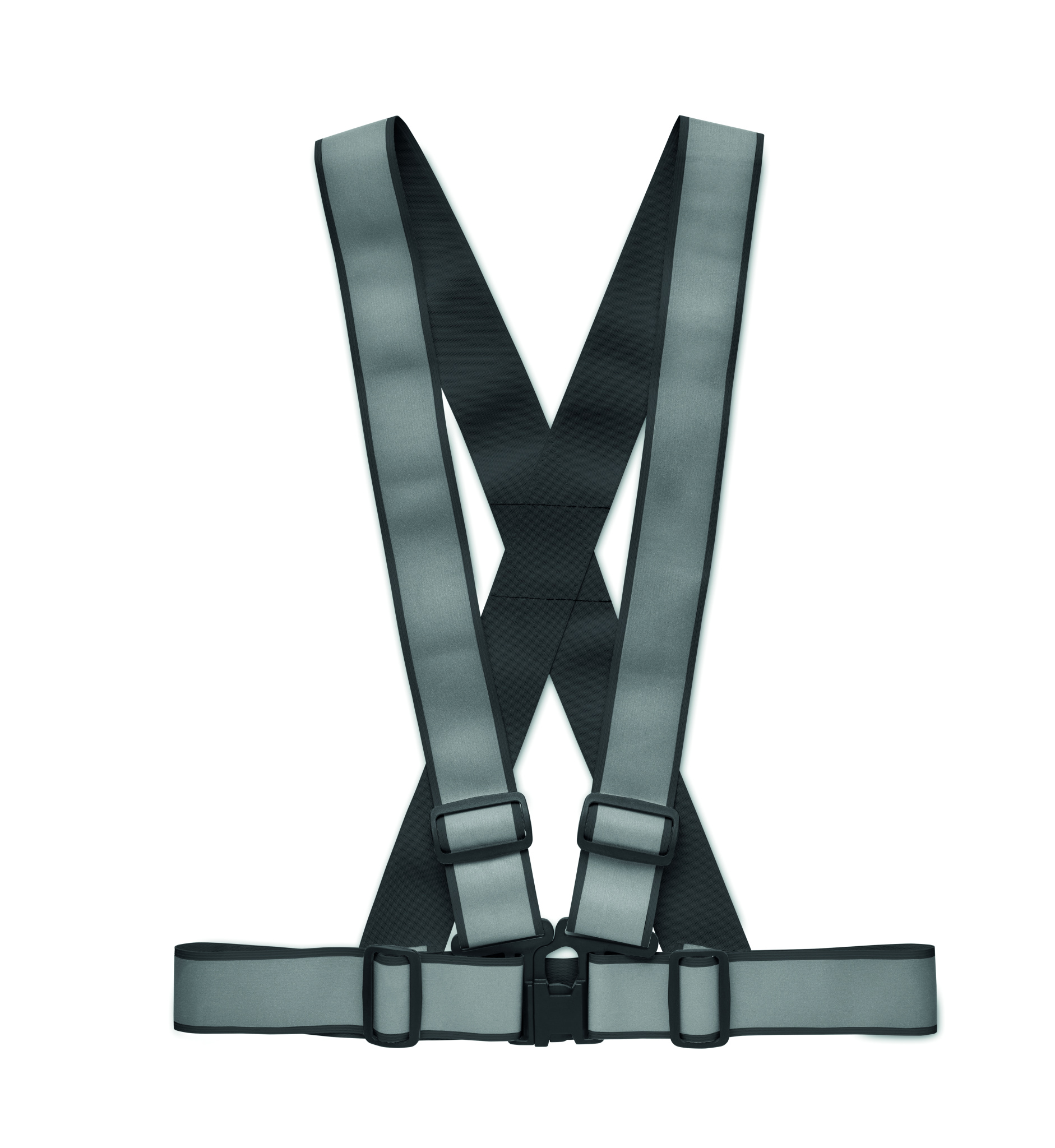 Reguliuojamas 360° atspindintis kūno diržas su sidabrinėmis juostelėmis. EN17353: 202 TIPAS-B3.