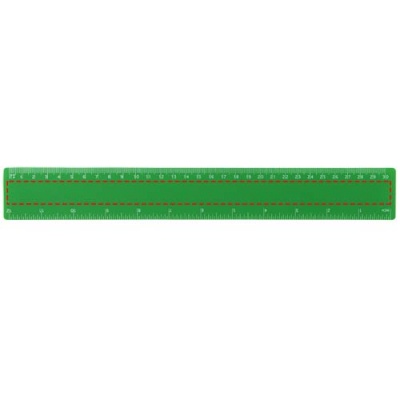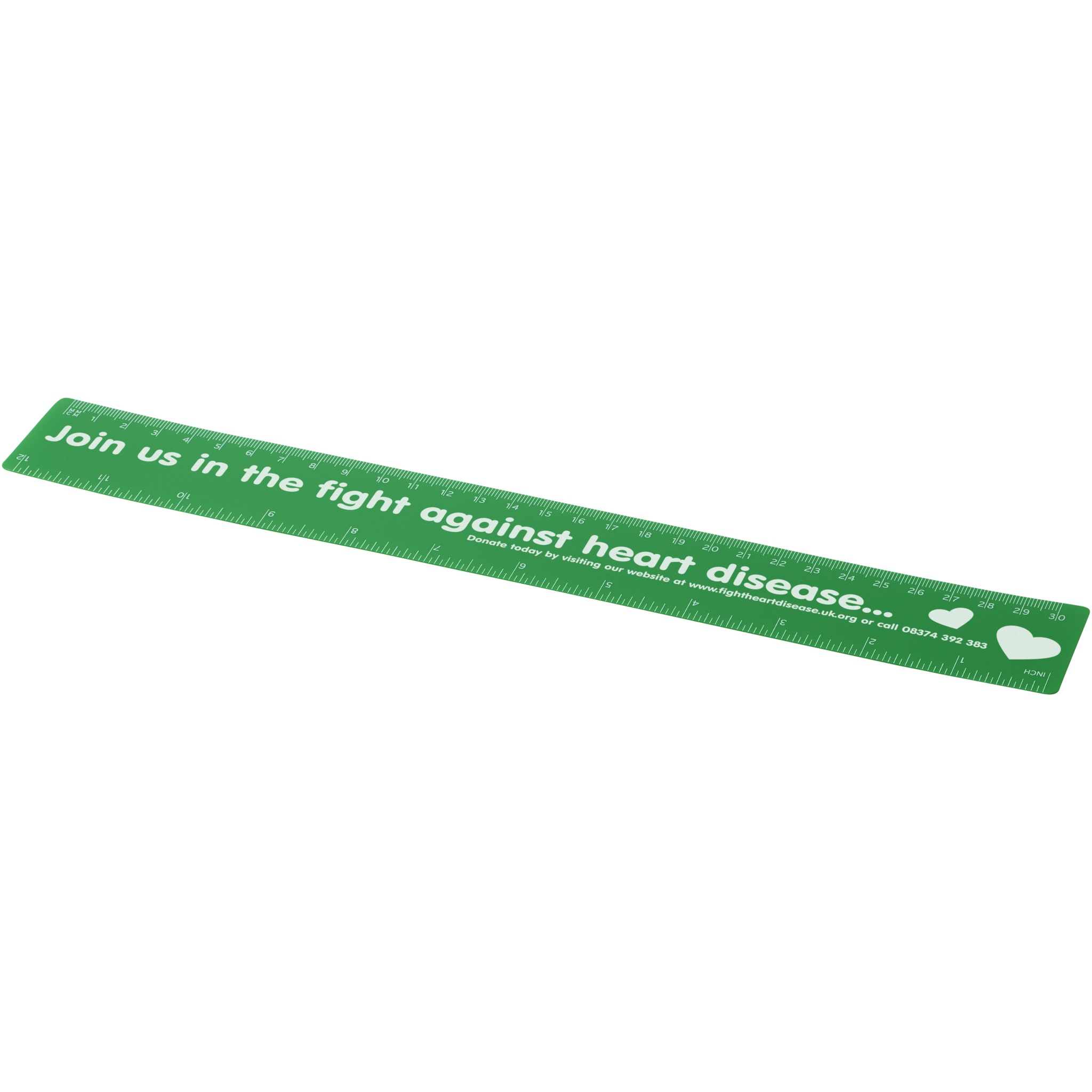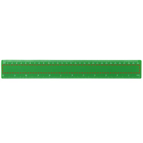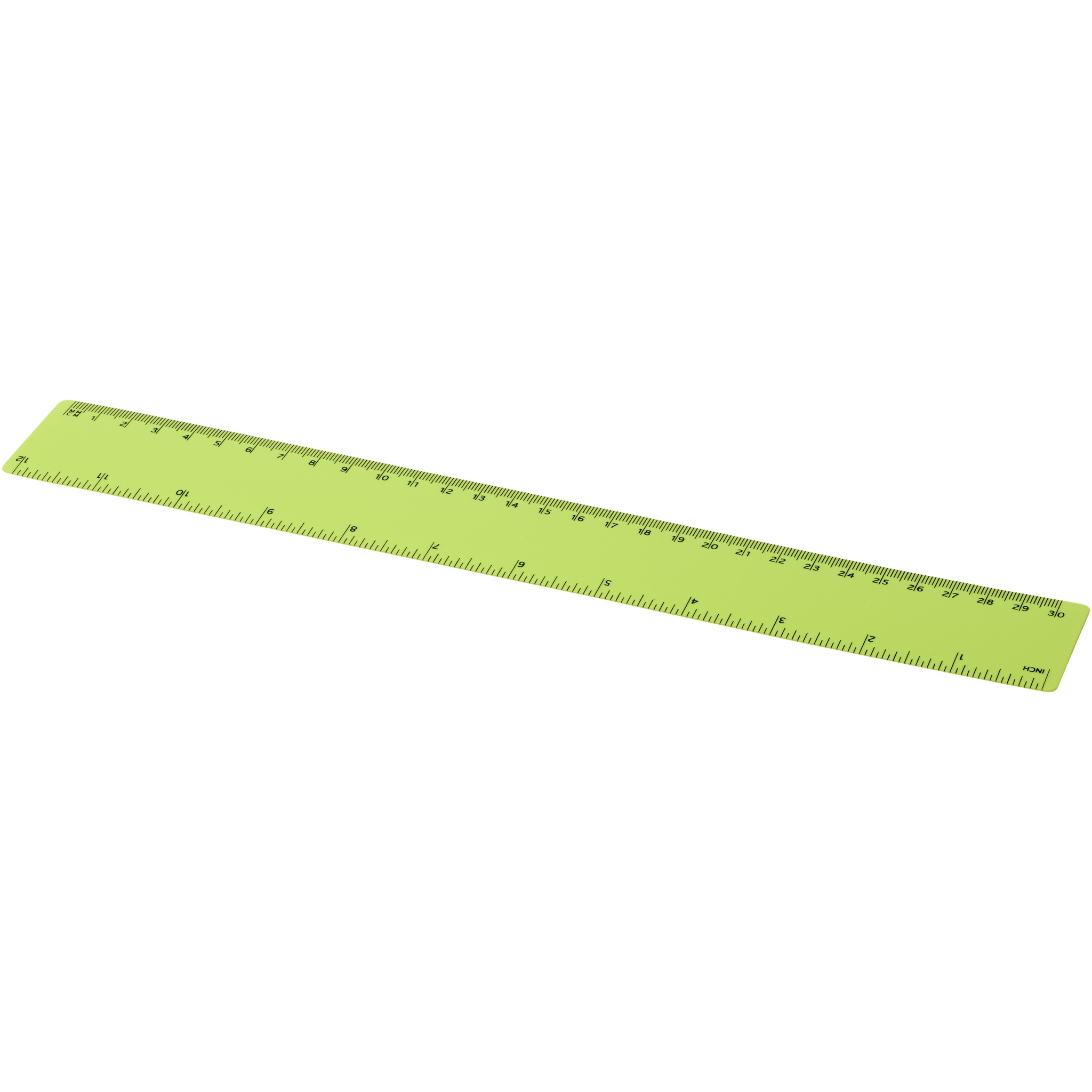 Lanksti lengva plastikinė liniuotė su ženklais tiek coliais, tiek centimetrais. Atkreipkite dėmesį, kad liniuotės ženklai spausdinami kartu su meno kūriniais, paprastos liniuotės nežymės.