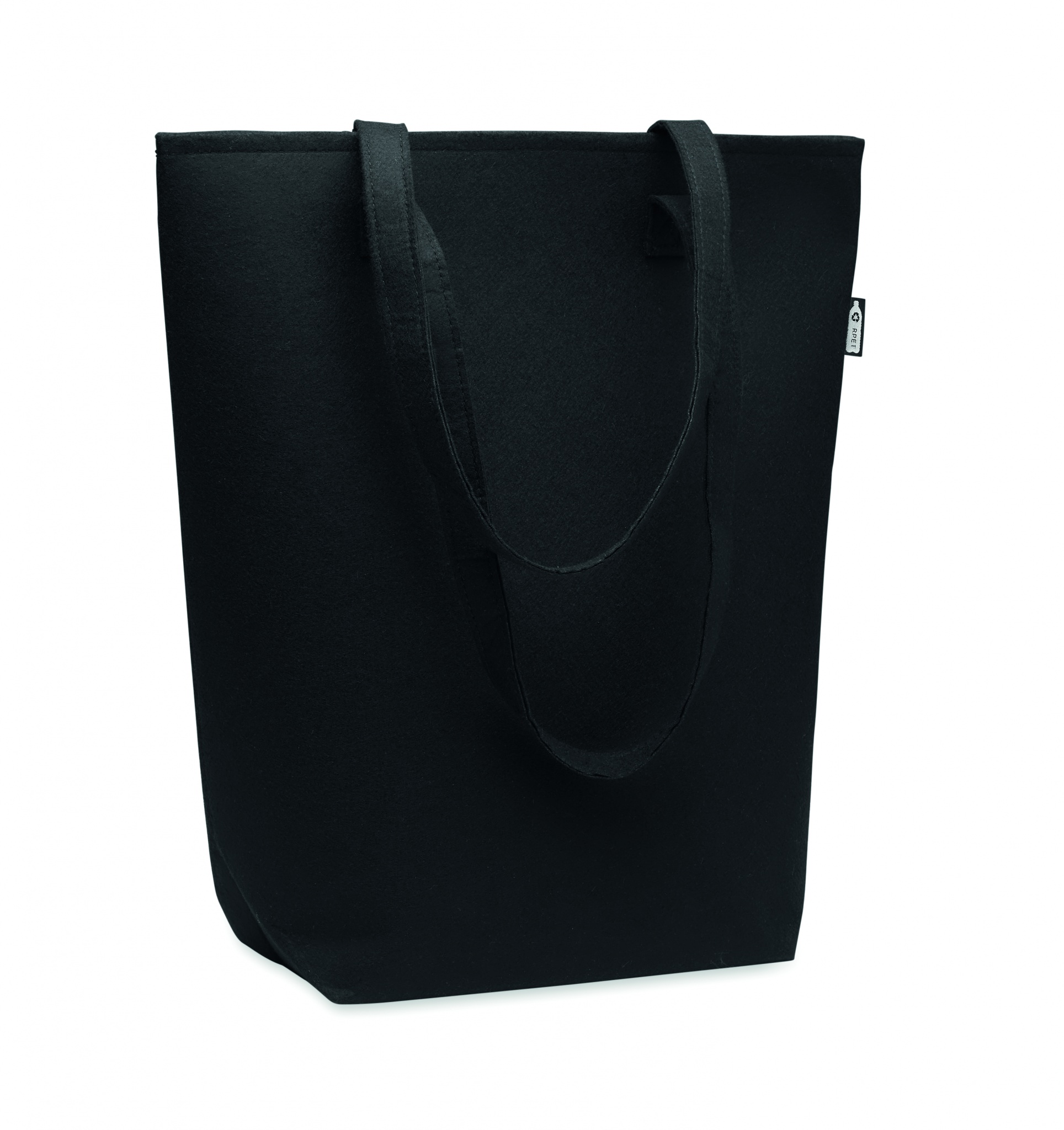 RPET veltinio pirkinių krepšys ilgomis rankenomis. Veltinio storis: 1 mm