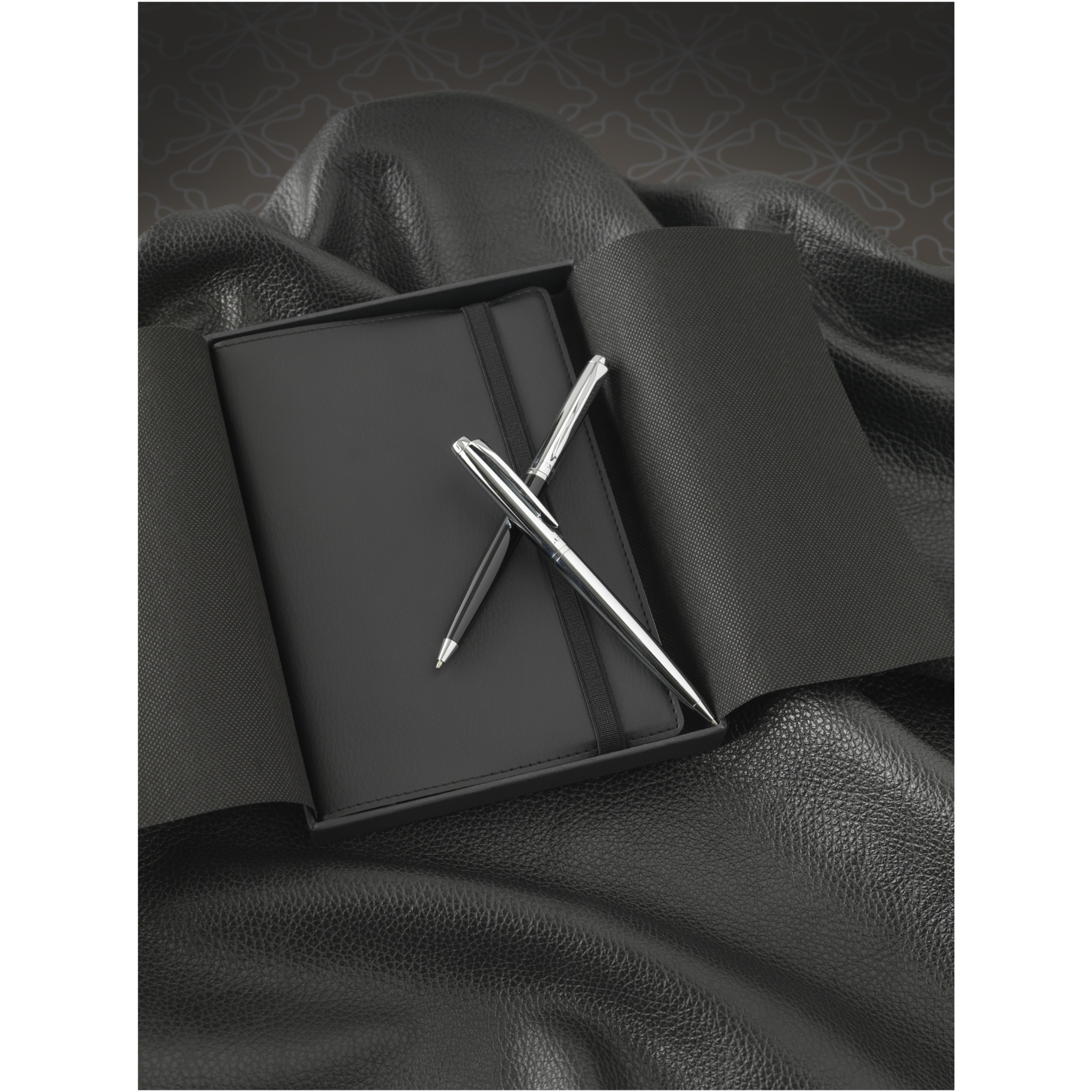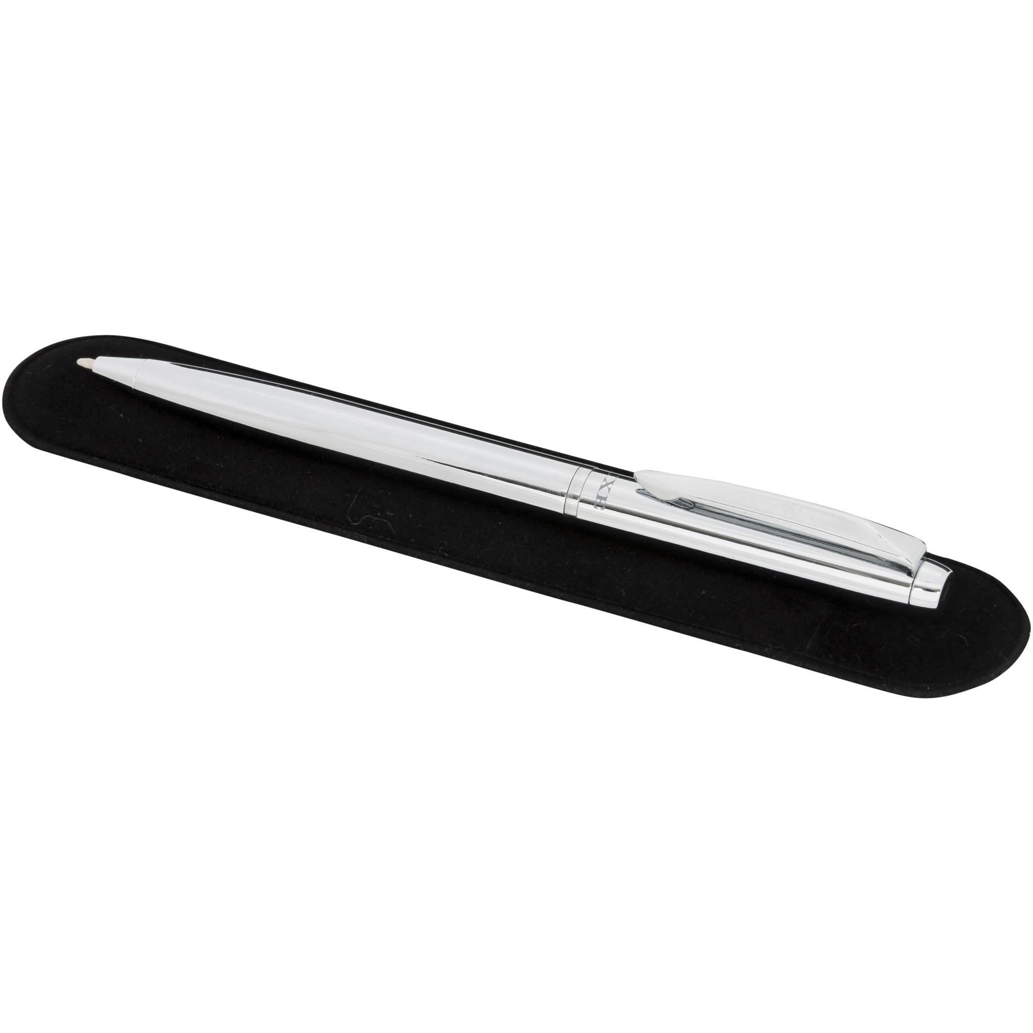 Ekskluzīva dizaina lodīšu pildspalva ar spīdīgiem hroma akcentiem. Ieskaitot augstākās kvalitātes melnās tintes uzpilde un iepakota ''LUXE'' dāvanu kastītē (15x3,5x2 cm).
