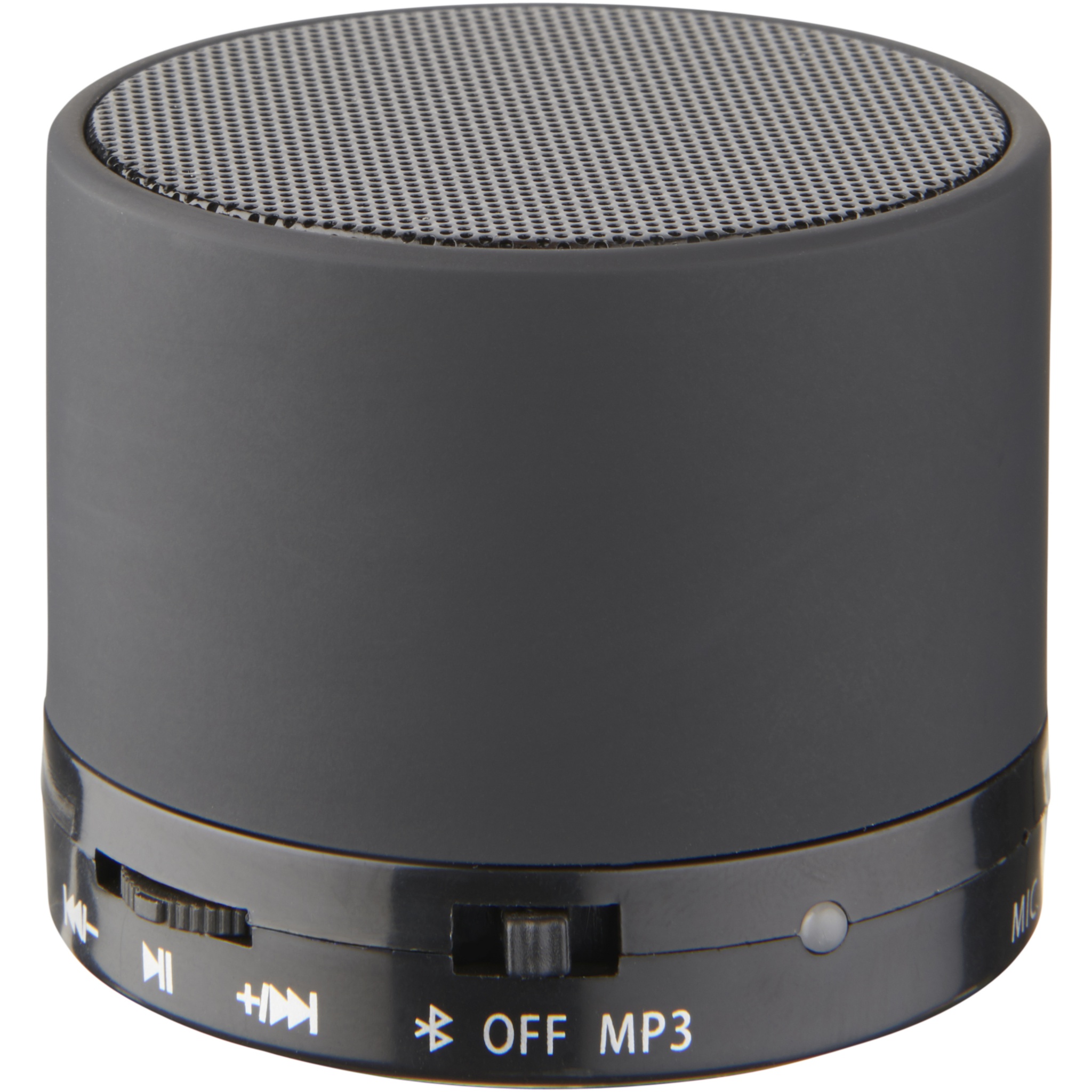 Gumijas cilindra skaļrunis. Izbaudiet mūziku un filmas jebkurā vietā, savienojot pārī savas ar Bluetooth® saderīgās ierīces, piemēram, iPhone, iPad vai Android OS ierīces, ar šo pārnēsājamo Bluetooth® skaļruni (diapazons 10 M). Izmantojot iebūvēto mikrofonu, skaļrunis ļauj veikt konferences zvanu, atrodoties ceļā, izmantojot viedtālruni vai video tērzēšanas programmas, piemēram, Skype. Nāk ar jauku gumijotu apdari. Komplektā USB barošanas avots. .