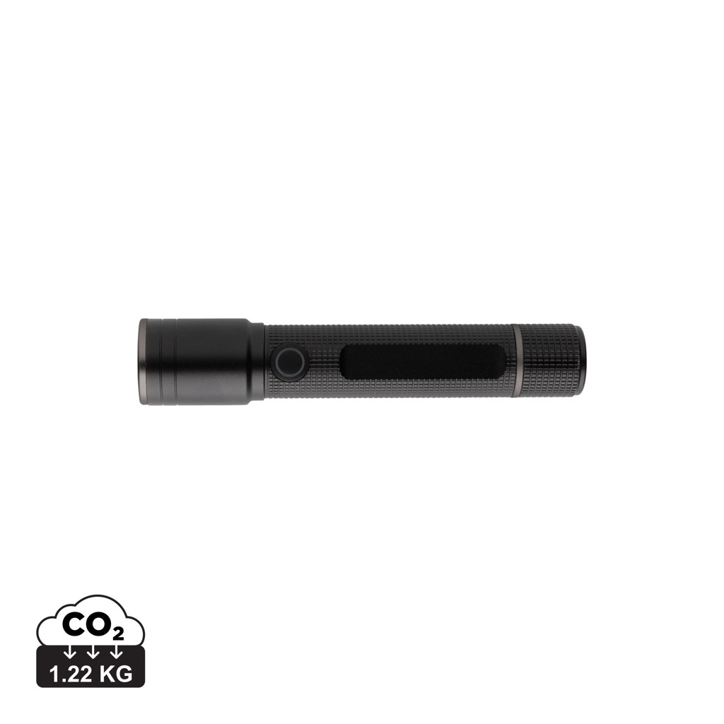 Gear X RCS otrreizēji pārstrādāta alumīnija USB uzlādējams kabatas lukturītis, melns