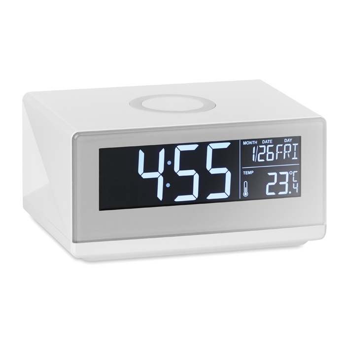 LED pulkstenis un bezvadu lādētājs 5W, Balts