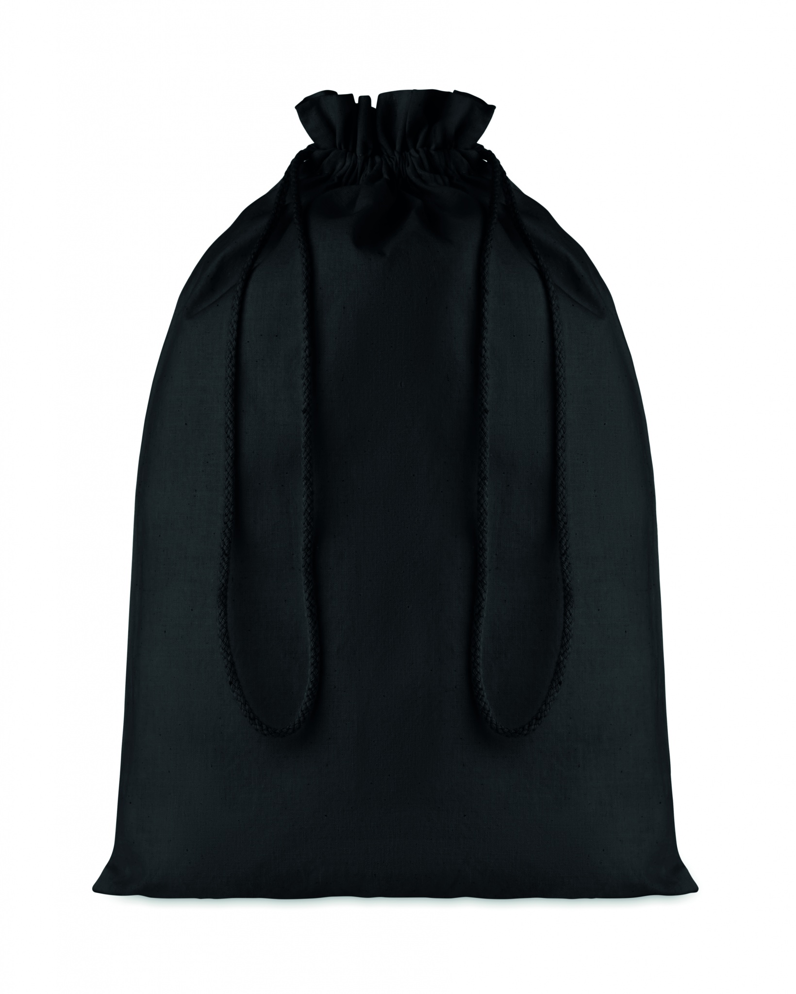 Liels 105 g/m² kokvilnas dāvanu maiss ar auklas aizdari, izmērs 30 x 47 cm, melnā krāsā, pieejams ar jūsu individuālo dizainu vietnē www.logo.ee. Pasūtiet šo un citus personalizētus dāvanas un produktus ar apdruku tiešsaistē savai kompānijai!