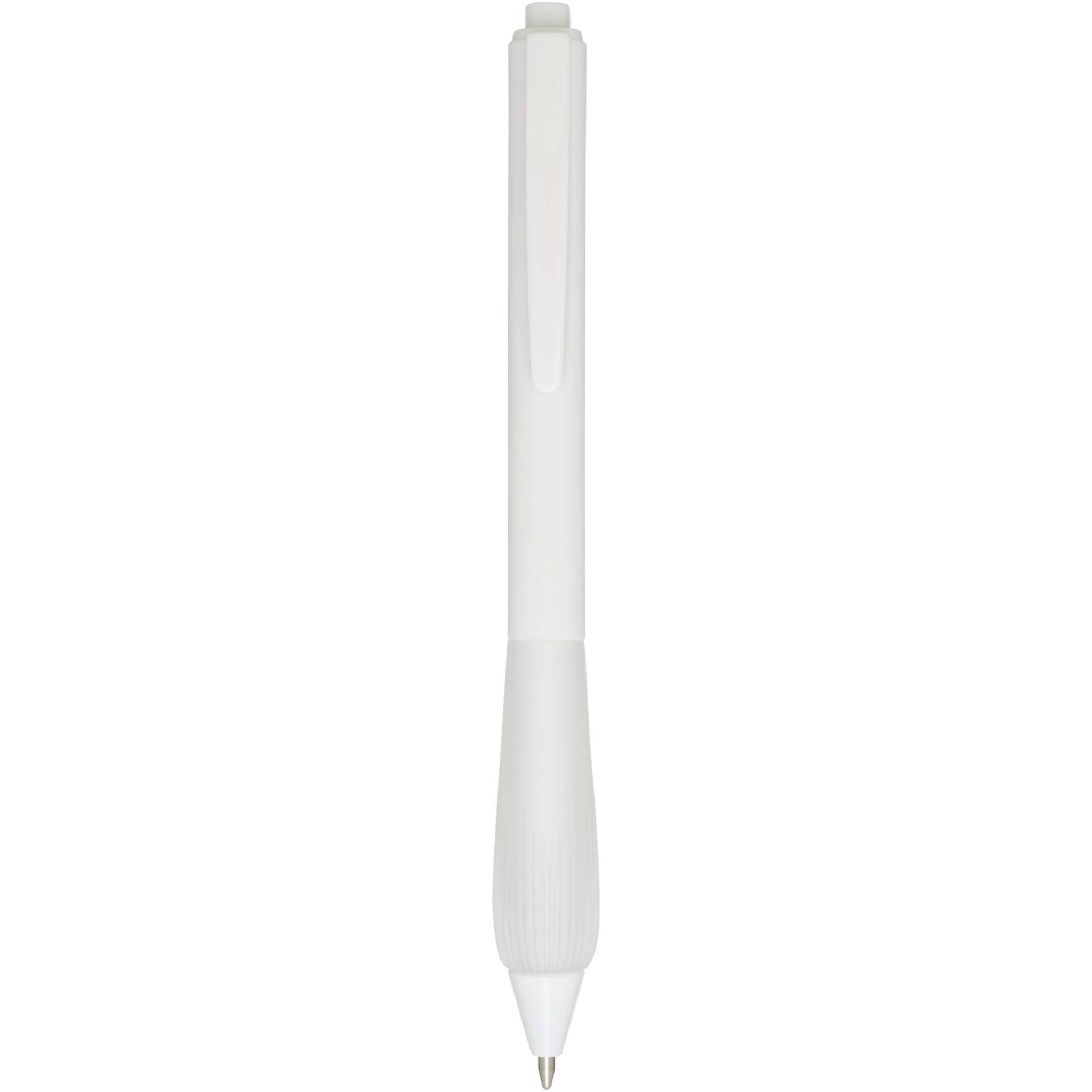 Pārstrādāta plastmasas lodīšu pildspalva ar gumijotu stobru un rokturi no TPR. Tintes krāsa: zila. Rakstīšanas garums: 1000 metri. Uzgaļa izmērs: 1,0 mm.