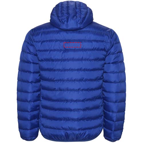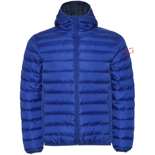Vīriešu stepēta spalvu jaka ar pieguļošu kapuci. Apgriezti rāvējslēdzēji ar atbilstošu zoda aizsargu. Divas priekšējās kabatas ar rāvējslēdzēju. Pieskaņota elastīga apdare aprocēs, apakšmalā un kapucē. Kontrastējoša iekšējā odere. Komplektā bagāžas soma. Viegls un salokāms apģērbs. Ūdens izturīgs. Vēja necaurlaidīgs modelis.