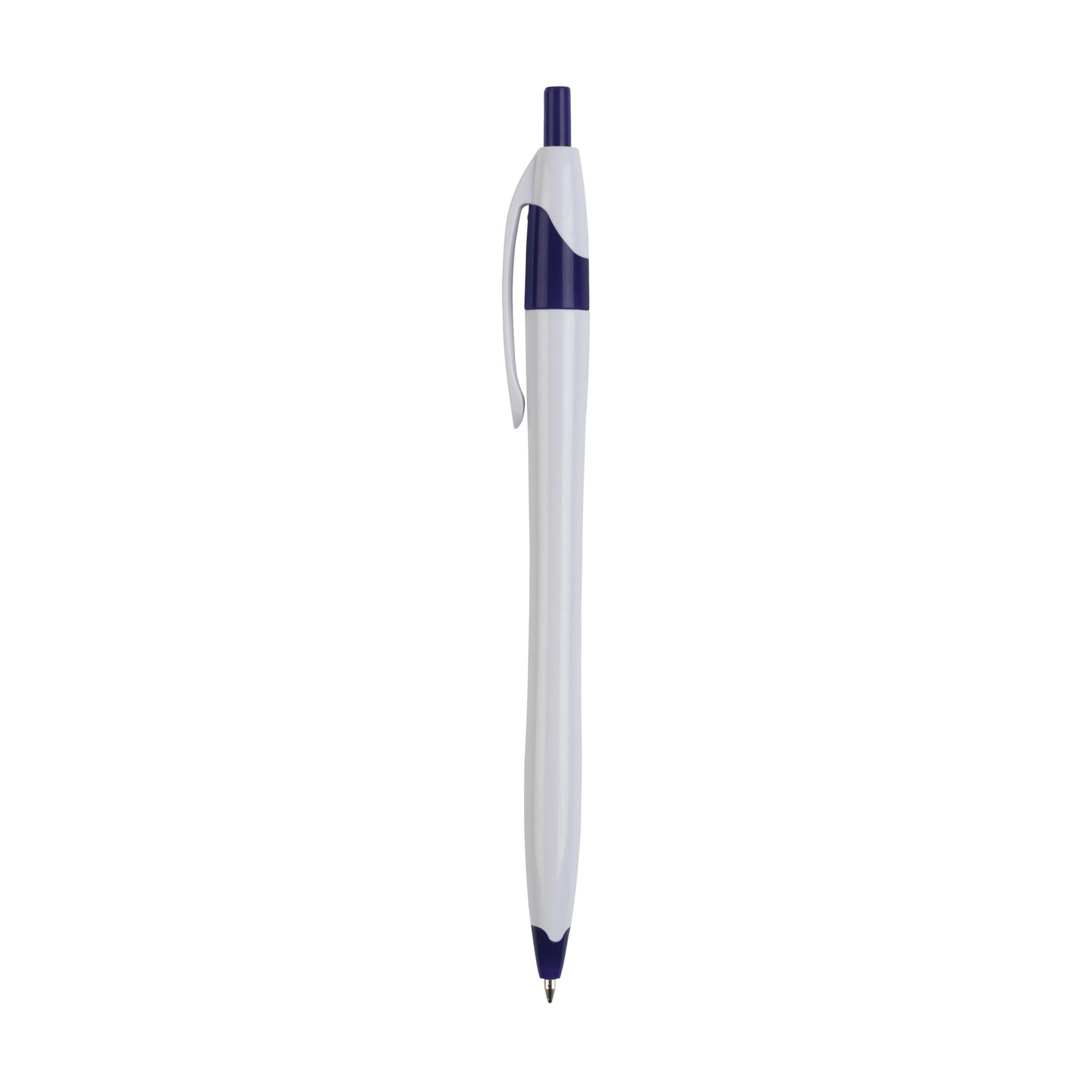 Zilas tintes lodīšu pildspalva ar krāsainiem akcentiem un pilnveidotu mucu.
