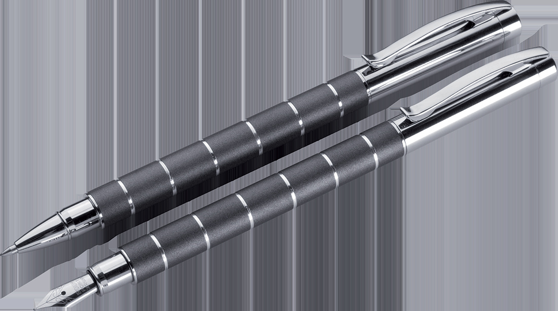 Rakstīšanas komplekts, kas sastāv no kvalitatīva maciņa ar atloku, lodīšu pildspalvas ar lielu melnu plastmasas pildspalvu un tintes pildspalvas. Jūsu logotips tiks uzdrukāts uz abiem rakstīšanas instrumentiem. Lāzera cena abiem rakstāminstrumentiem.