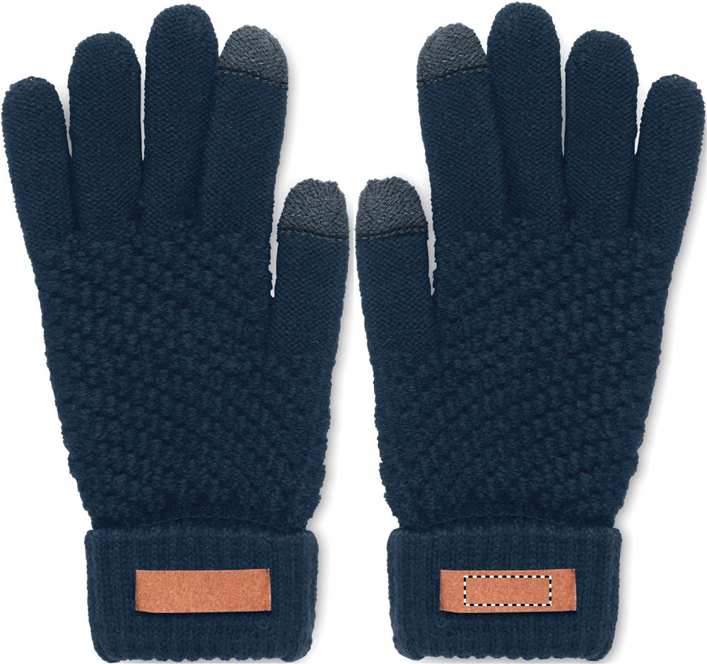 Taktilie cimdi viedtālrunim no RPET ar etiķeti apdrukas laukumam.
