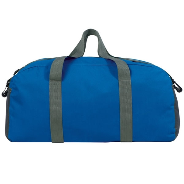 Liela 600D poliestera sporta soma ar lielu iekšējo nodalījumu, pārnēsāšanas rokturiem un regulējamu plecu siksnu. Mēs drukājam jūsu logotipu vienā pusē.
