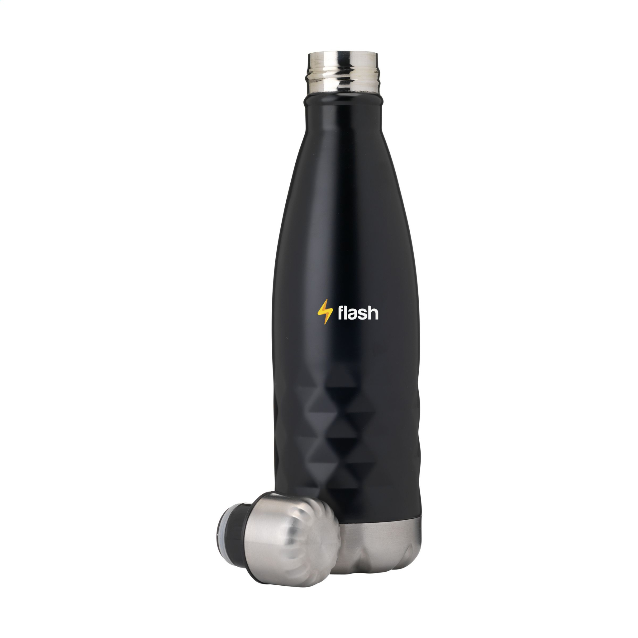 Dubultsienu, necaurlaidīga nerūsējošā tērauda ūdens pudele/termopudele ar raksturīgu 3D ģeometrisku dimanta rakstu. Piemērots aukstā vai karstā ūdens temperatūras uzturēšanai. Tilpums 500 ml. Katra prece ir atsevišķi iepakota.